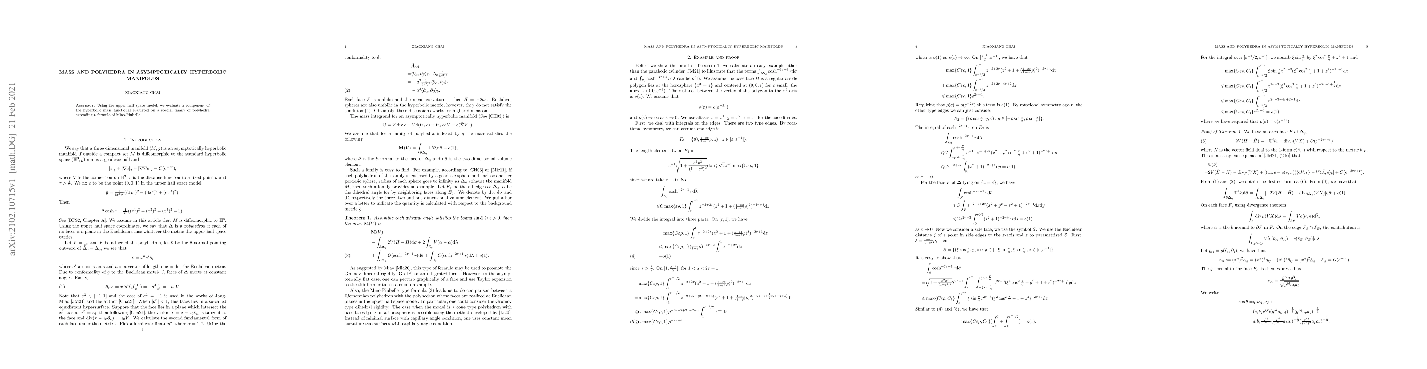 Researchers studied how mass accumulates in hyperbolic manifolds with special polyhedra shapes, extending an existing formula to better understand the behavior of these complex spaces.