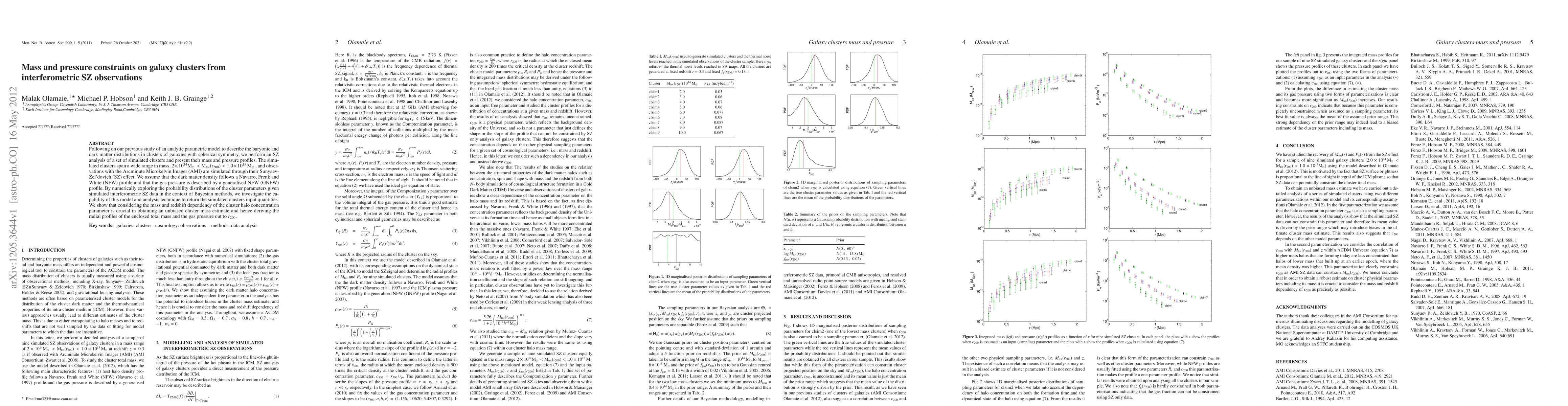 Researchers used interferometric SZ observations to study galaxy clusters, finding that mass and pressure constraints can provide accurate cluster parameters; considering the mass and redshift dependency of the halo concentration parameter is crucial for unbiased estimates.
