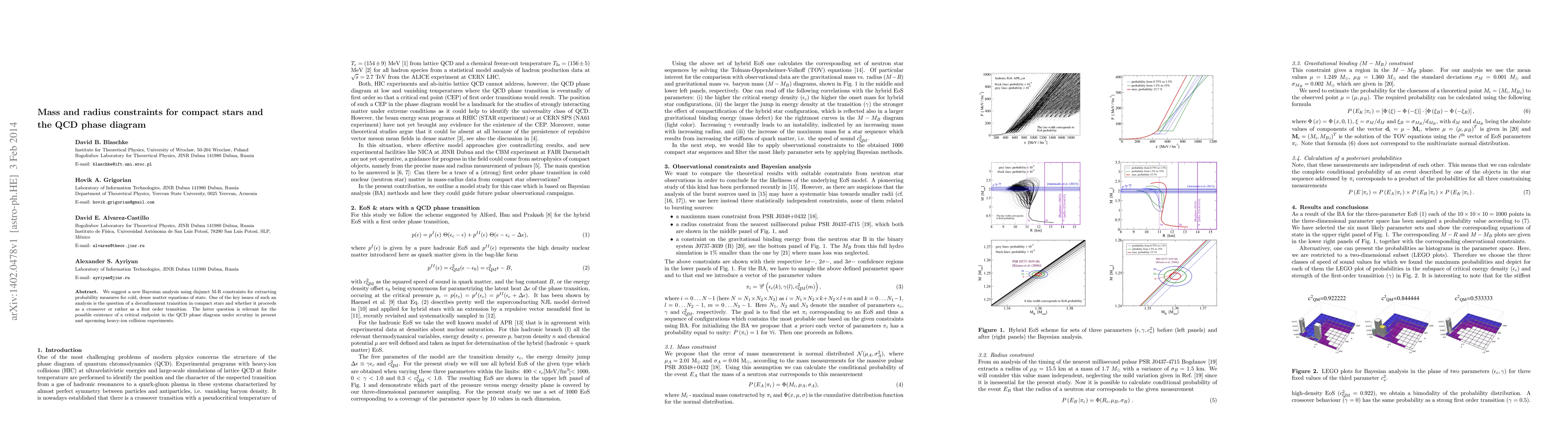 We suggest a new Bayesian analysis using disjunct M-R constraints for extracting probability measures for cold, dense matter equations of state. One of the key issues of such an analysis is the question of a deconfinement transition in compact stars and whether it proceeds as a crossover or rather as a first order transition. The latter question is relevant for the possible existence of a critical endpoint in the QCD phase diagram under scrutiny in present and upcoming heavy-ion collision experiments.