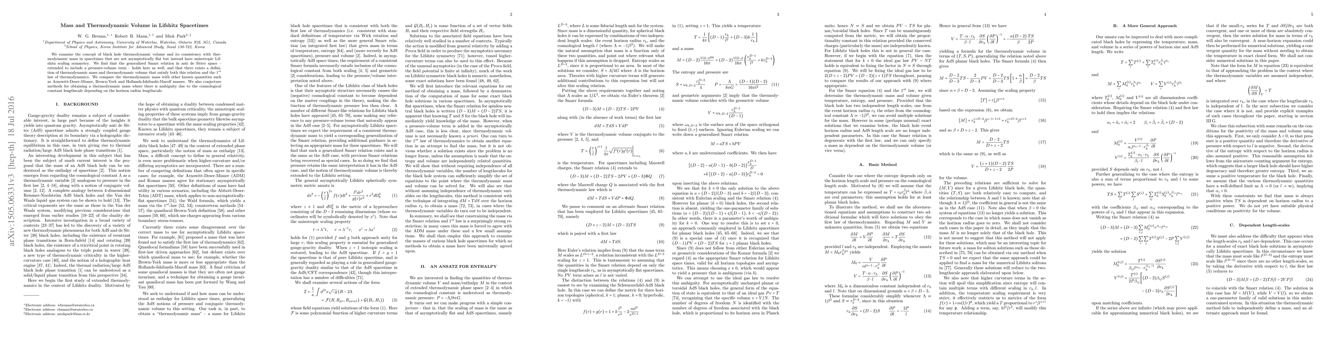 This paper explores black hole thermodynamic volume and its relation to thermodynamic mass in Lifshitz spacetimes, demonstrating that the generalized Smarr relation holds with a pressure-volume term. It proposes a consistent definition of thermodynamic mass and volume that aligns with the first law of thermodynamics, and compares it with other mass definitions like ADM and Brown-York.