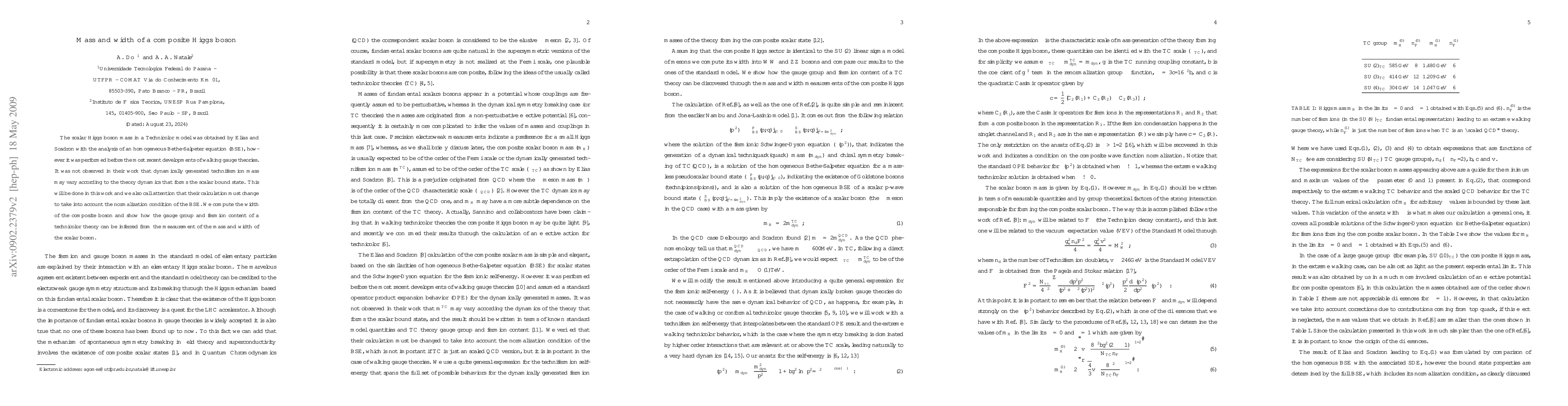 The scalar Higgs boson mass in a Technicolor model was obtained by Elias and Scadron with the analysis of an homogeneous Bethe-Salpeter equation (BSE), however it was performed before the most recent developments of walking gauge theories. It was not observed in their work that dynamically generated technifermion mass may vary according to the theory dynamics that forms the scalar bound state. This will be done in this work and we also call attention that their calculation must change to take into account the normalization condition of the BSE. We compute the width of the composite boson and show how the gauge group and fermion content of a technicolor theory can be inferred from the measurement of the mass and width of the scalar boson.