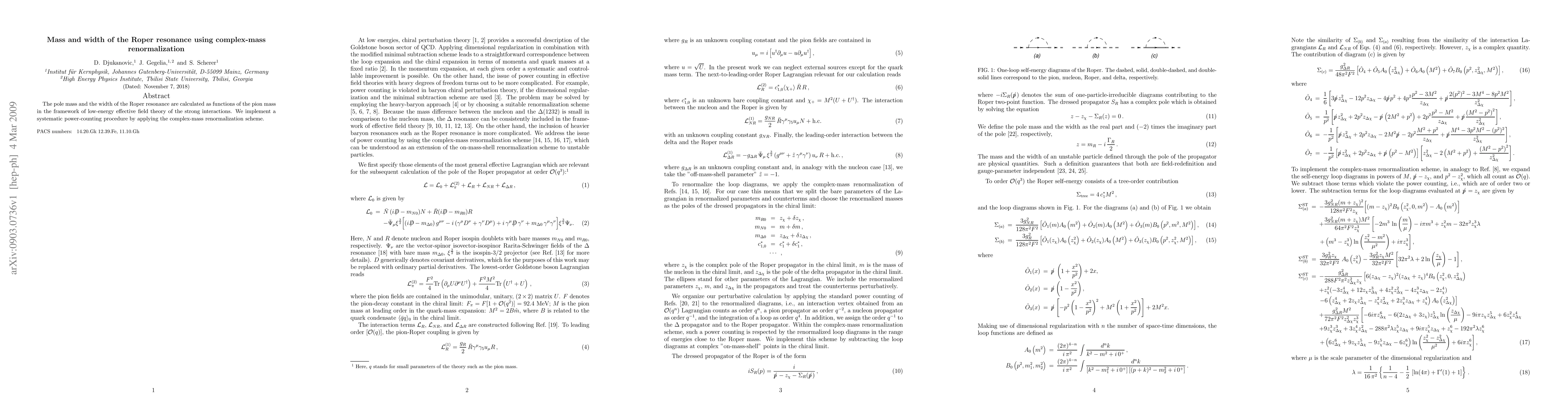 The pole mass and the width of the Roper resonance are calculated as functions of the pion mass in the framework of low-energy effective field theory of the strong interactions. We implement a systematic power-counting procedure by applying the complex-mass renormalization scheme.