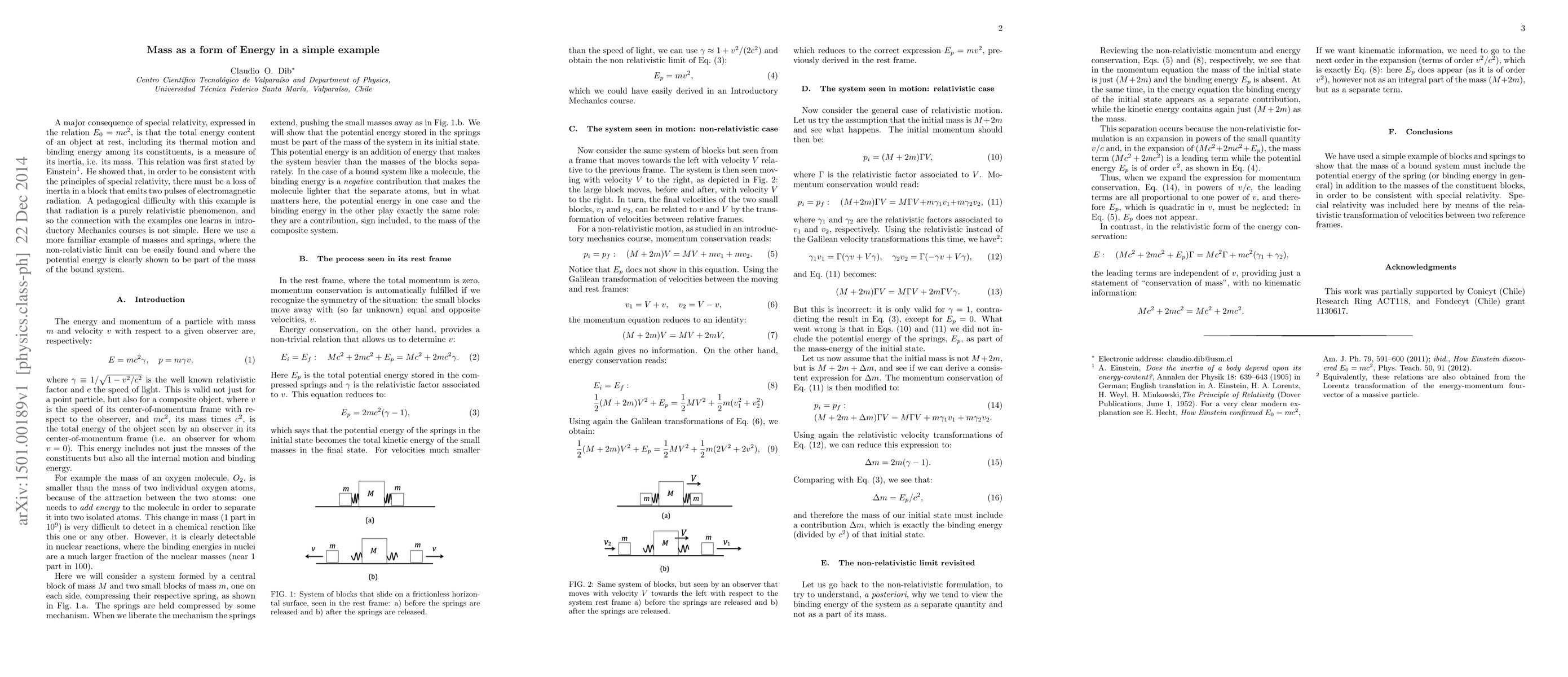 A study demonstrates that mass is equivalent to energy in a system of masses and springs, showing that potential energy is part of the total mass of the bound system.