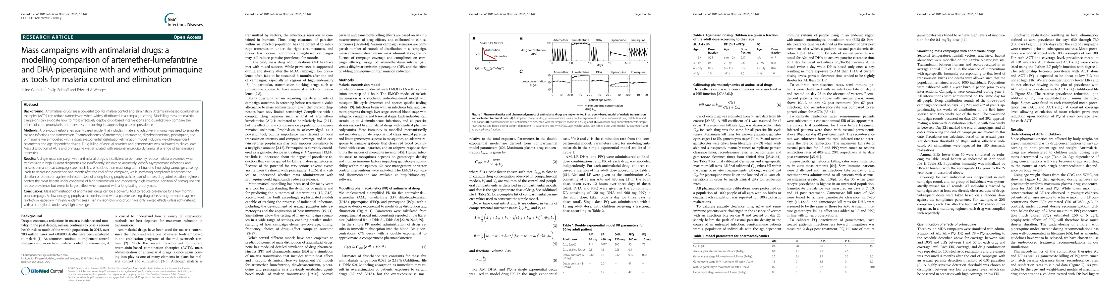 Antimalarial drugs are a powerful tool for malaria control and elimination. Artemisinin-based combination therapies (ACTs) can reduce transmission when widely distributed in a campaign setting. Modelling mass antimalarial campaigns can elucidate how to most effectively deploy drug-based interventions and quantitatively compare the effects of cure, prophylaxis, and transmission-blocking in suppressing parasite prevalence. A previously established agent-based model that includes innate and adaptive immunity was used to simulate malaria infections and transmission. Pharmacokinetics of artemether, lumefantrine, dihydroartemisinin, piperaquine, and primaquine were modelled with a double-exponential distribution-elimination model including weight-dependent parameters and age-dependent dosing. Drug killing of asexual parasites and gametocytes was calibrated to clinical data. Mass distribution of ACTs and primaquine was simulated with seasonal mosquito dynamics at a range of transmission intensities. A single mass campaign with antimalarial drugs is insufficient to permanently reduce malaria prevalence when transmission is high. Current diagnostics are insufficiently sensitive to accurately identify asymptomatic infections, and mass-screen-and-treat campaigns are much less efficacious than mass drug administrations. Improving campaign coverage leads to decreased prevalence one month after the end of the campaign, while increasing compliance lengthens the duration of protection against reinfection. Use of a long-lasting prophylactic as part of a mass drug administration regimen confers the most benefit under conditions of high transmission and moderately high coverage. Addition of primaquine can reduce prevalence but exerts its largest effect when coupled with a long-lasting prophylactic.