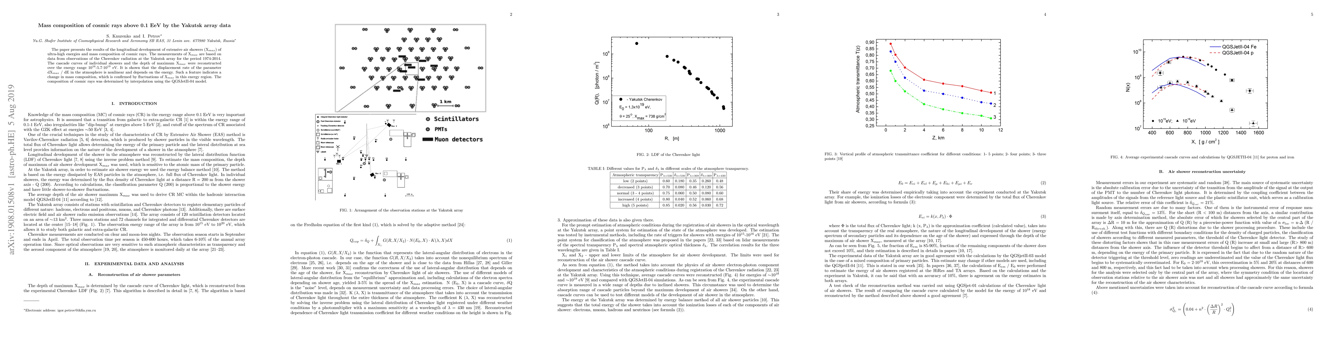 Researchers analyzed data from the Yakutsk array to determine the mass composition of cosmic rays above 0.1 EeV, finding a nonlinear relationship between energy and depth of maximum X$_{max}$, indicating a change in mass composition.