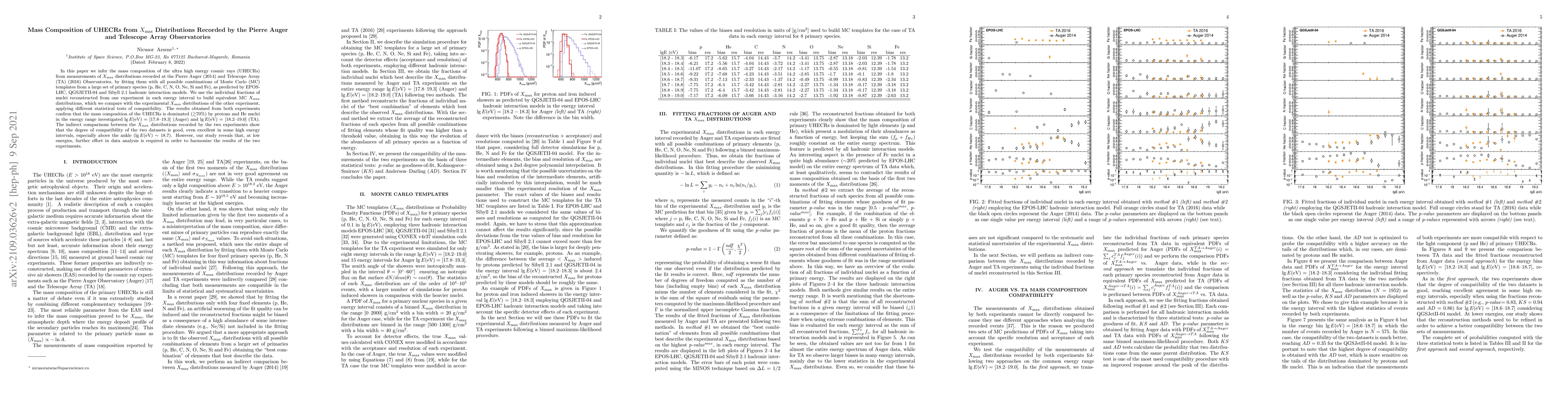 This paper analyzes the mass composition of ultra high energy cosmic rays (UHECRs) using $X_{\rm max}$ distributions from the Pierre Auger and Telescope Array observatories. The study finds that protons and helium nuclei dominate the composition in the energy range of 17.8-19.3 eV, with good compatibility between the two datasets, especially at higher energies.