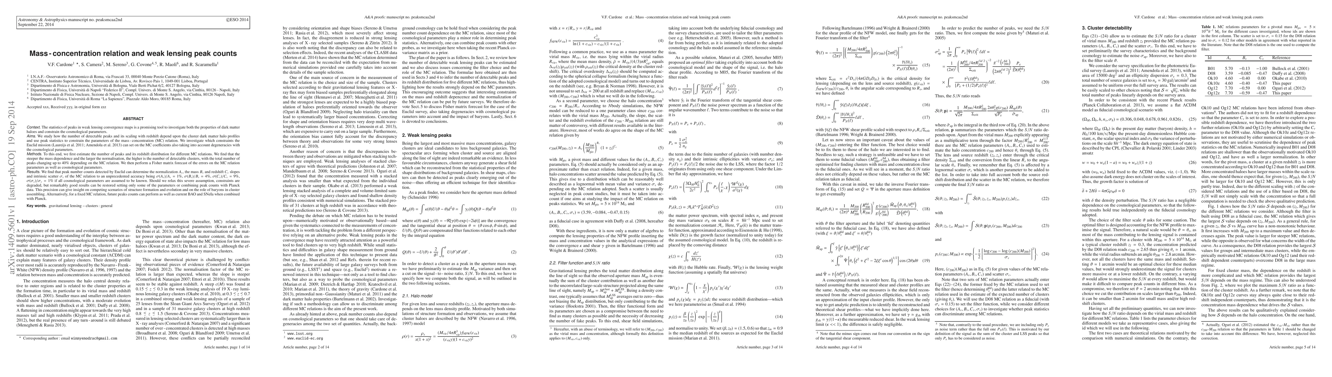 A study on weak lensing peak counts reveals that the number of detectable clusters depends on the mass-concentration relation, with steeper relations leading to higher peak counts. The Euclid mission can constrain the MC relation parameters with unprecedented accuracy.