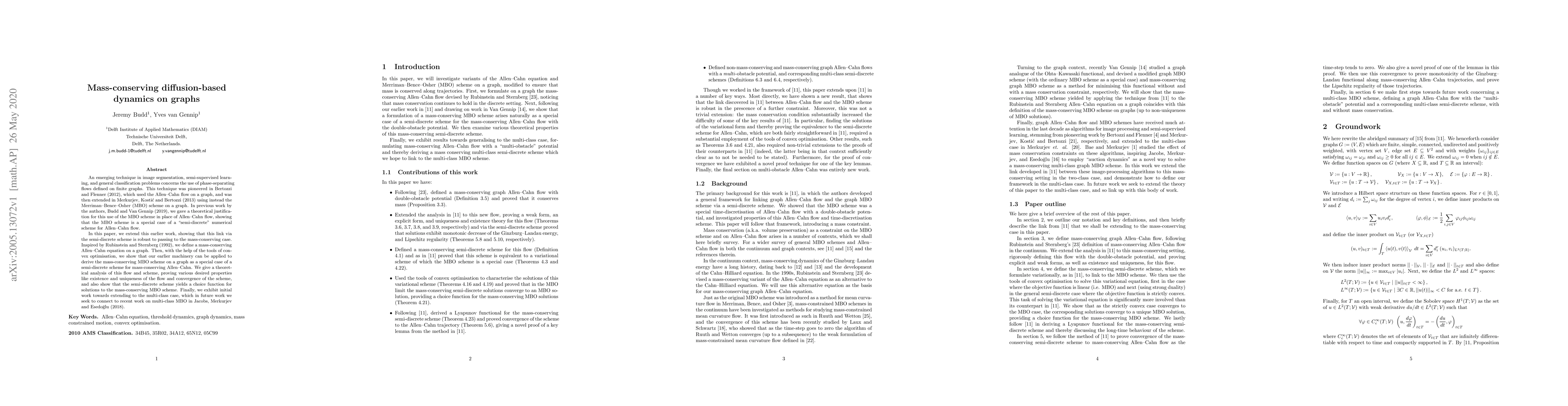 This paper extends previous work on the Merriman-Bence-Osher (MBO) scheme on graphs, establishing a robust link between the MBO scheme and a mass-conserving Allen-Cahn equation. The authors provide a theoretical analysis, proving existence, uniqueness, and convergence properties, and outline initial steps towards extending the method to multi-class scenarios.