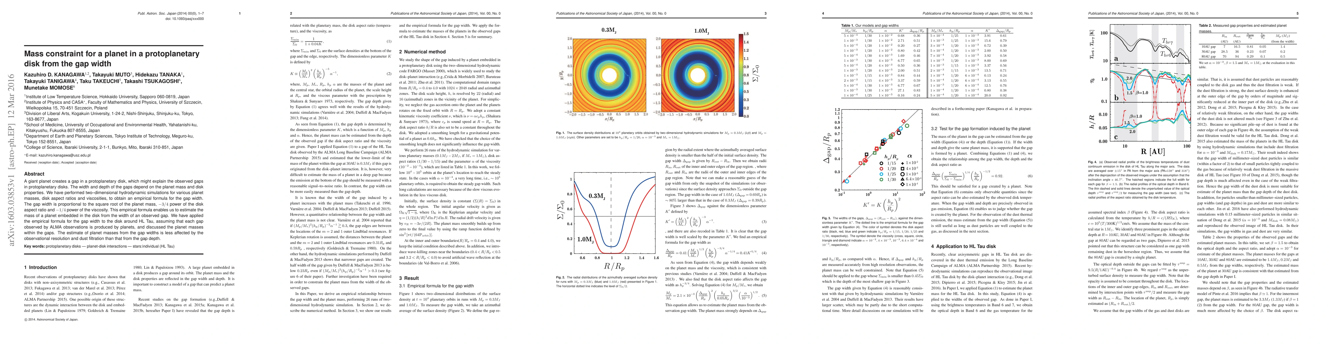 This paper develops an empirical formula from hydrodynamic simulations to estimate the mass of a planet in a protoplanetary disk based on the gap width it creates. The formula shows that gap width is proportional to the planet mass's square root, inversely related to the disk aspect ratio and viscosity, enabling mass estimations independent of resolution and dust filtration.