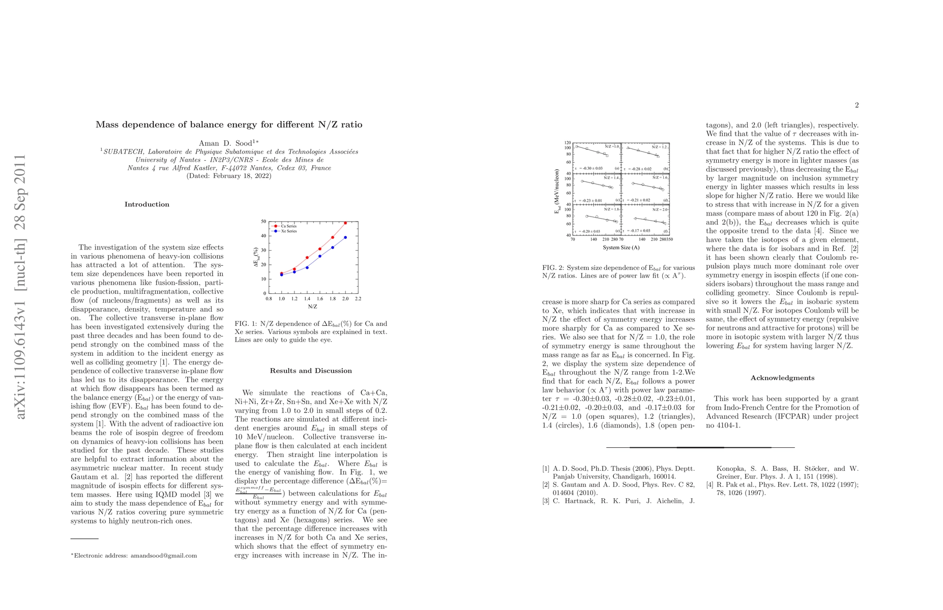 We present the study for the mass dependence of E$_{bal}$ for various N/Z ratios covering pure symmetric systems to highly neutron-rich ones.