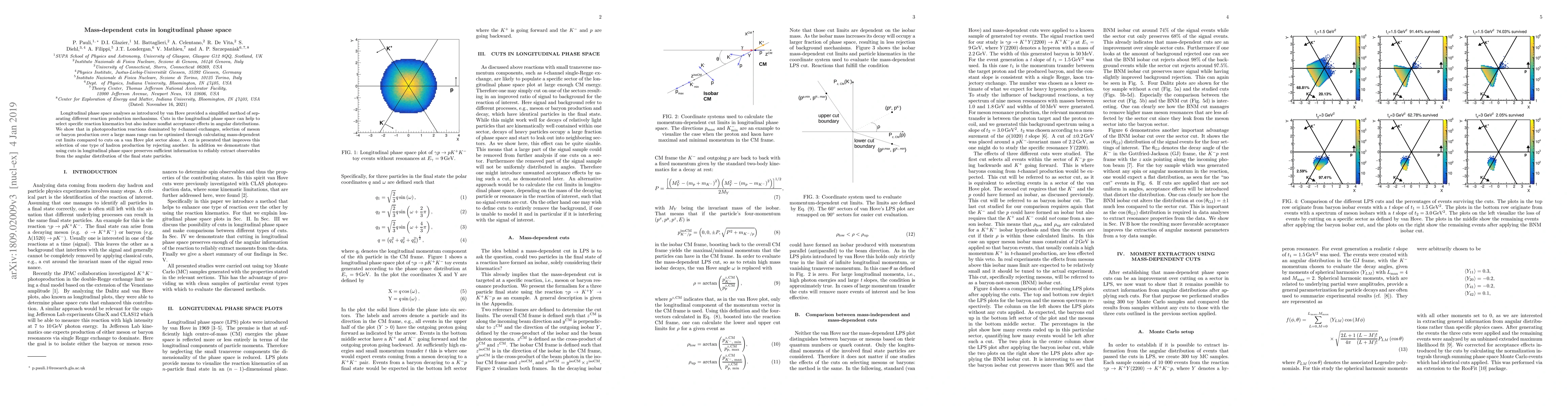 Longitudinal phase space analyses as introduced by van Hove provided a simplified method of separating different reaction production mechanisms. Cuts in the longitudinal phase space can help to select specific reaction kinematics but also induce nonflat acceptance effects in angular distributions. We show that in photoproduction reactions dominated by t-channel exchanges, selection of meson or baryon production over a large mass range can be optimized through calculating mass-dependent cut limits compared to cuts on a van Hove plot sector alone. A cut is presented that improves this selection of one type of hadron production by rejecting another. In addition we demonstrate that using cuts in longitudinal phase space preserves sufficient information to reliably extract observables from the angular distribution of the final state particles.