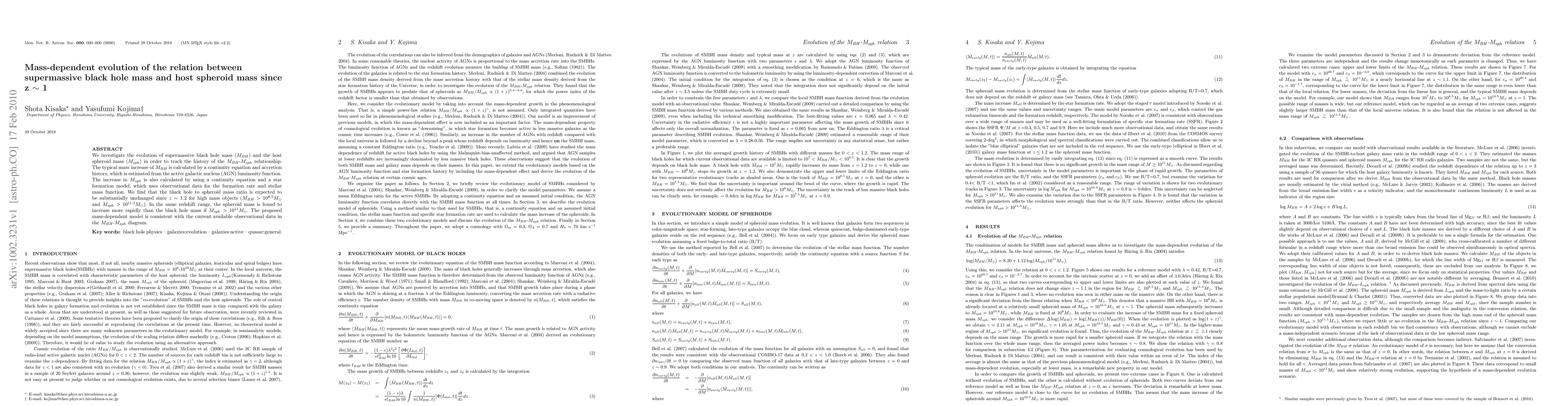 This paper examines the evolution of supermassive black hole and host spheroid mass relationships since z ~ 1, finding that the black hole to spheroid mass ratio remains stable for high mass objects, while spheroid mass increases more rapidly than black hole mass for larger spheroids. The proposed model aligns with current observational data.
