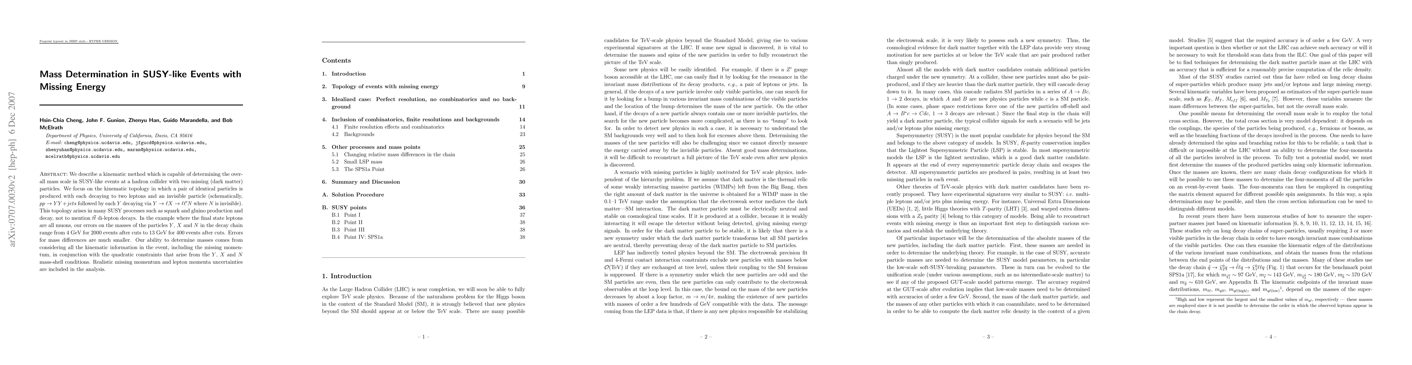We describe a kinematic method which is capable of determining the overall mass scale in SUSY-like events at a hadron collider with two missing (dark matter) particles. We focus on the kinematic topology in which a pair of identical particles is produced with each decaying to two leptons and an invisible particle (schematically, $pp\to YY+jets$ followed by each $Y$ decaying via $Y\to \ell X\to \ell\ell'N$ where $N$ is invisible). This topology arises in many SUSY processes such as squark and gluino production and decay, not to mention $t\anti t$ di-lepton decays. In the example where the final state leptons are all muons, our errors on the masses of the particles $Y$, $X$ and $N$ in the decay chain range from 4 GeV for 2000 events after cuts to 13 GeV for 400 events after cuts. Errors for mass differences are much smaller. Our ability to determine masses comes from considering all the kinematic information in the event, including the missing momentum, in conjunction with the quadratic constraints that arise from the $Y$, $X$ and $N$ mass-shell conditions. Realistic missing momentum and lepton momenta uncertainties are included in the analysis.