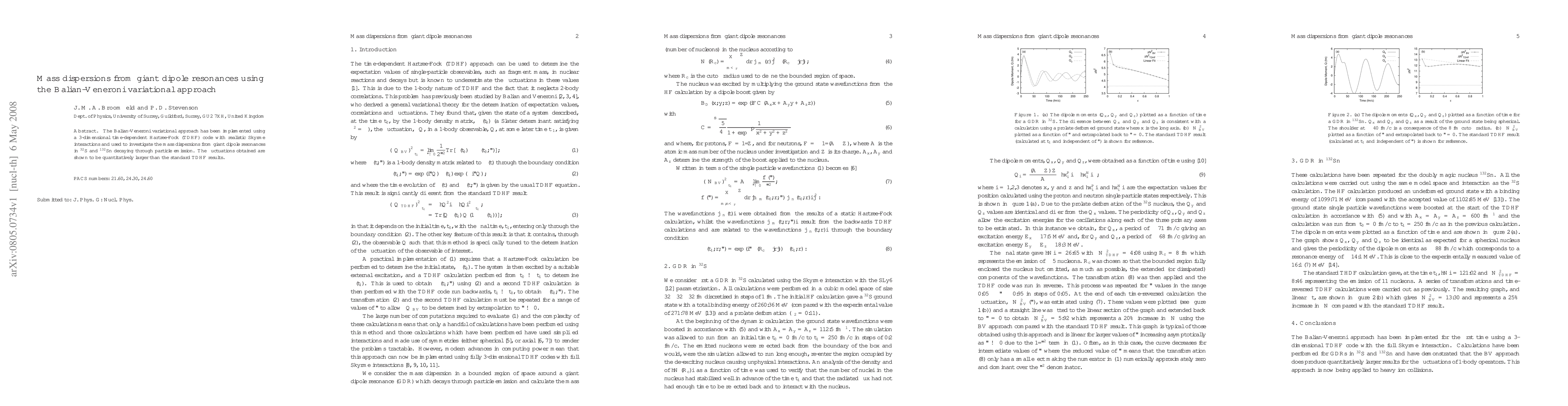 This study employs the Balian-Veneroni variational approach within a 3D time-dependent Hartree-Fock framework to analyze mass dispersions from giant dipole resonances in S-32 and Sn-132. The results reveal quantitatively larger fluctuations compared to standard TDHF outcomes.