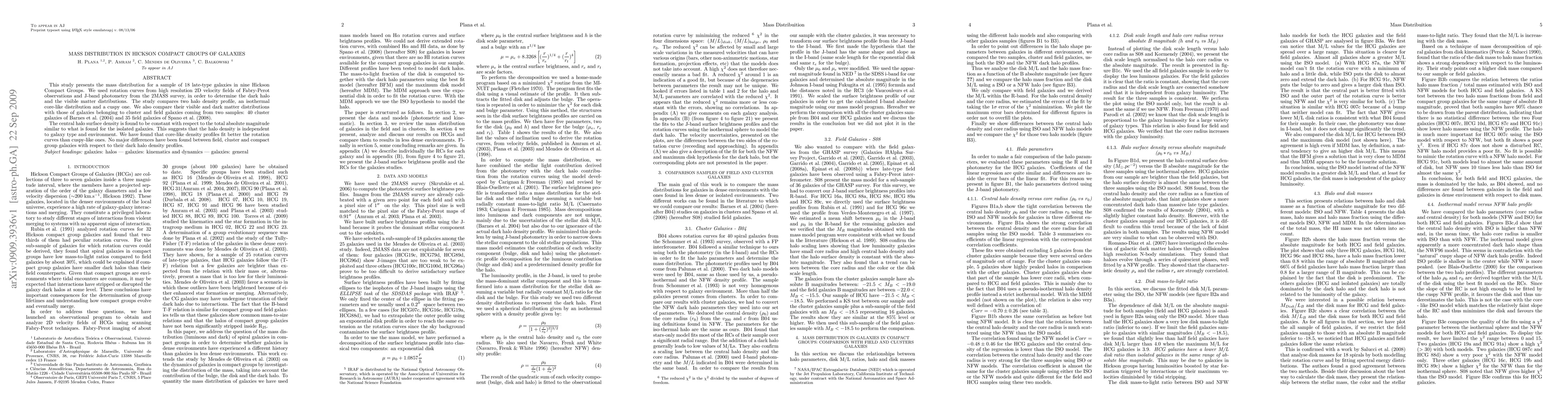 This study investigates the mass distribution in 18 late-type galaxies within nine Hickson Compact Groups, finding that core-like density profiles fit rotation curves better than cuspy ones. The central halo surface density is consistent across different environments, suggesting that halo density is independent of galaxy type and surroundings.