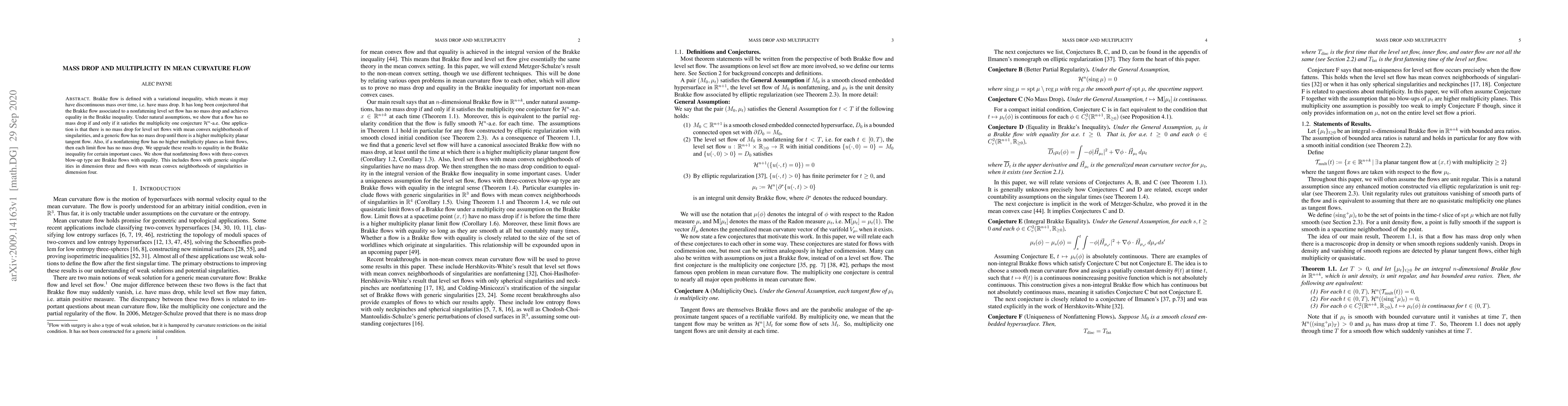 This paper investigates mass drop phenomena in Brakke flow under mean curvature flow, proving that a flow has no mass drop if and only if it satisfies the multiplicity one conjecture. It demonstrates that level set flows with mean convex neighborhoods of singularities and generic flows exhibit no mass drop until higher multiplicity planar tangent flows emerge.