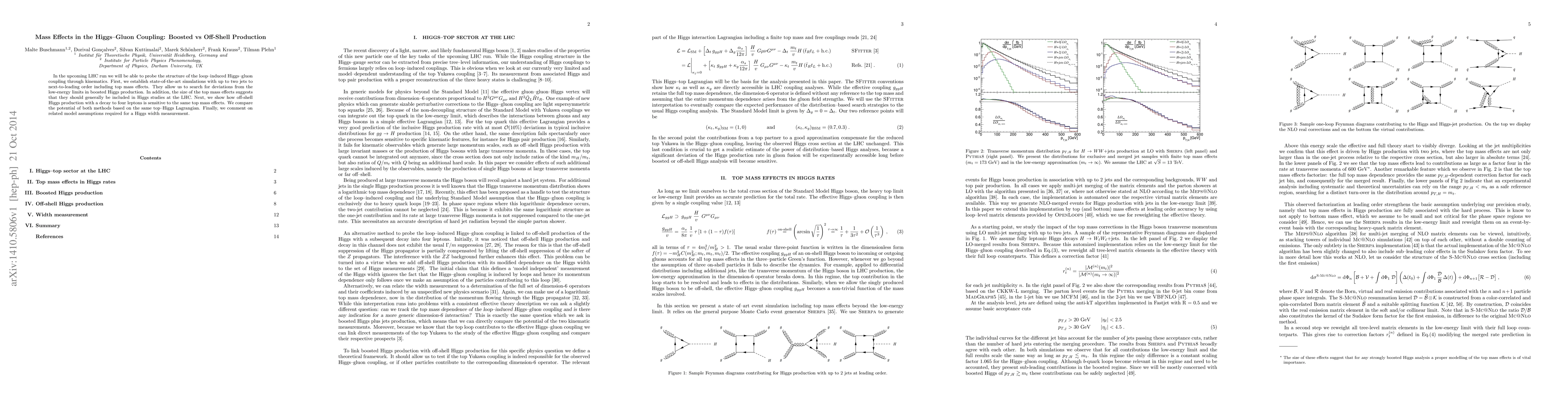 In the upcoming LHC run we will be able to probe the structure ofthe loop--induced Higgs--gluon coupling through kinematics. First, we establish state-of-the-art simulations with up to two jets to next-to-leading order including top mass effects. They allow us to search for deviations from the low-energy limits in boosted Higgs production. In addition, the size of the top mass effects suggests that they should generally be included in Higgs studies at the LHC. Next, we show how off-shell Higgs production with a decay to four leptons is sensitive to the same top mass effects. We compare the potential of both methods based on the same top--Higgs Lagrangian. Finally, we comment on related model assumptions required for a Higgs width measurement.