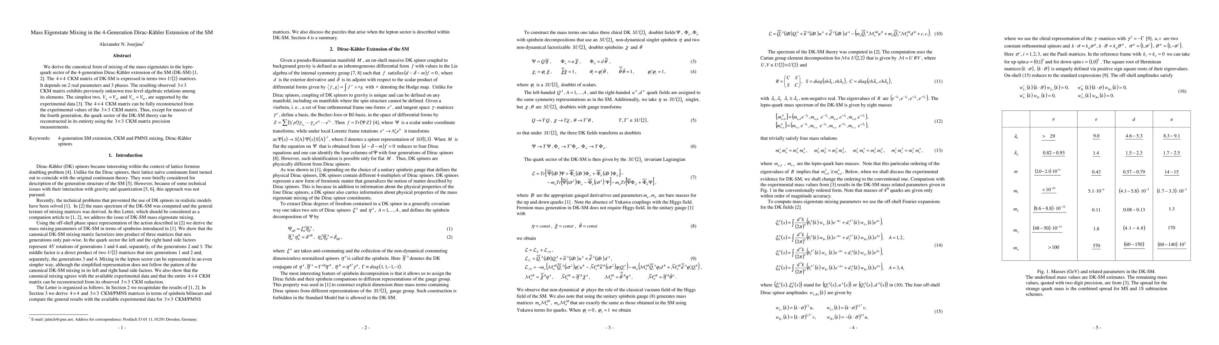 We derive the canonical form of mixing of the mass eigenstates in the lepto-quark sector of the 4-generation Dirac-Kaehler extension of the SM (DK-SM) [1,2]. The 4 x 4 CKM matrix of DK-SM is expressed in terms two U(2) matrices. It depends on 2 real parameters and 3 phases. The resulting observed 3 x 3 CKM matrix exhibits previously unknown tree-level algebraic relations among its elements. The simplest two, V_ts = V_cb and V_cs = V_tb, are supported by the experimental data [3]. The 4 x 4 CKM matrix can be fully reconstructed from the experimental values of the 3 x 3 CKM matrix. Thus, except for masses of the fourth generation, the quark sector of the DK-SM theory can be reconstructed in its entirety using the 3 x 3 CKM matrix precision measurements.