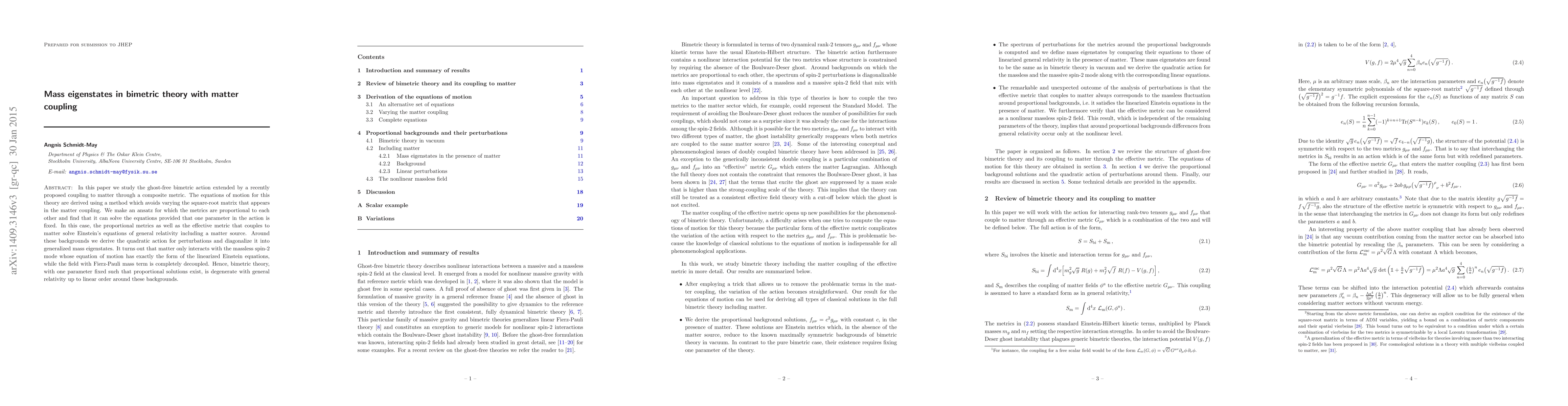 In this paper we study the ghost-free bimetric action extended by a recently proposed coupling to matter through a composite metric. The equations of motion for this theory are derived using a method which avoids varying the square-root matrix that appears in the matter coupling. We make an ansatz for which the metrics are proportional to each other and find that it can solve the equations provided that one parameter in the action is fixed. In this case, the proportional metrics as well as the effective metric that couples to matter solve Einstein's equations of general relativity including a matter source. Around these backgrounds we derive the quadratic action for perturbations, diagonalized into a massive and a massless spin-2 fluctuation. We find that only the massless spin-2 mode interacts with matter; a result which is independent of the remaining parameters of the theory.