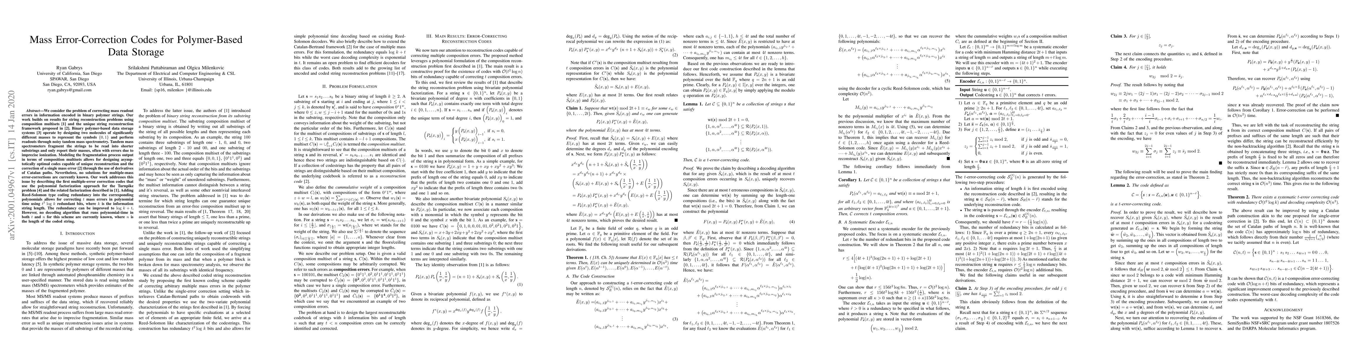 Researchers have developed mass error-correction codes for polymer-based data storage systems that can correct multiple errors in polynomial time, improving the reliability of binary polymer strings.