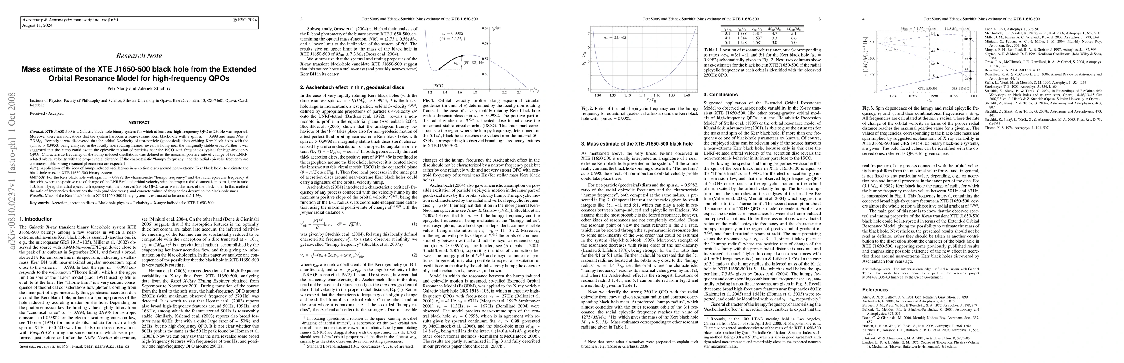 XTE J1650-500 is a Galactic black-hole binary system for which at least one high-frequency QPO at 250Hz was reported. Moreover there are indications that the system harbours a near-extreme Kerr black-hole with the spin near 0.998 and mass M<7.3M_sun. Recently it was discovered that the orbital 3-velocity of Keplerian (geodesical) discs orbiting Kerr black holes with the spin a>0.9953, being analyzed in the locally non-rotating frames, reveals a hump near the marginally stable orbit. Further it was suggested that the hump could excite the epicyclic motion of particles near the ISCO with frequencies typical for high-frequency QPOs. Characteristic frequency of the hump-induced oscillations was defined as the maximal positive rate of change of the LNRF-related orbital velocity with the proper radial distance. If the characteristic "humpy frequency" and the radial epicyclic frequency are commensurable, strong resonant phenomena are expected. For the Kerr black hole with the spin a=0.9982 the "humpy frequency" and the radial epicyclic frequency are in ratio 1:3. Identifying the radial epicyclic frequency with the observed 250Hz QPO, we get the mass of the black hole in XTE J1650-500 near 5.1M_sun.