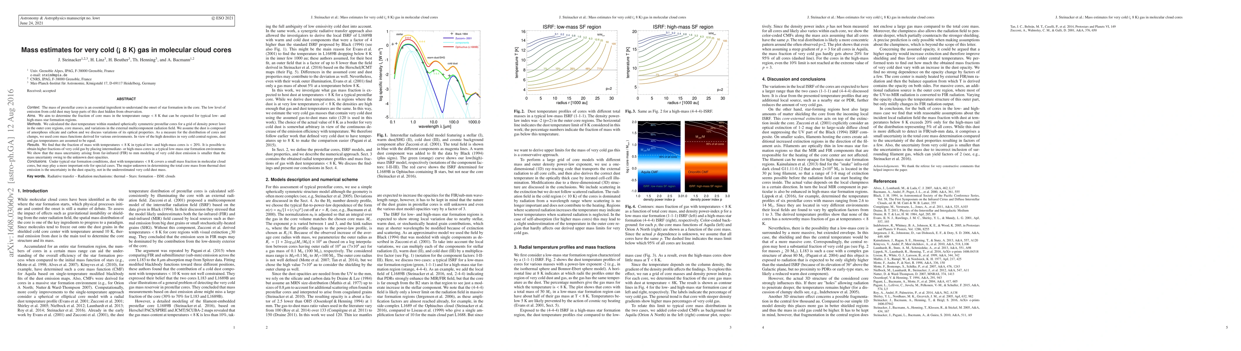 This paper estimates the mass of very cold gas (< 8 K) in molecular cloud cores, finding that typically less than 20% of core mass is at such low temperatures. It highlights that higher fractions of cold gas can occur in high-mass cores in low-mass star formation environments.