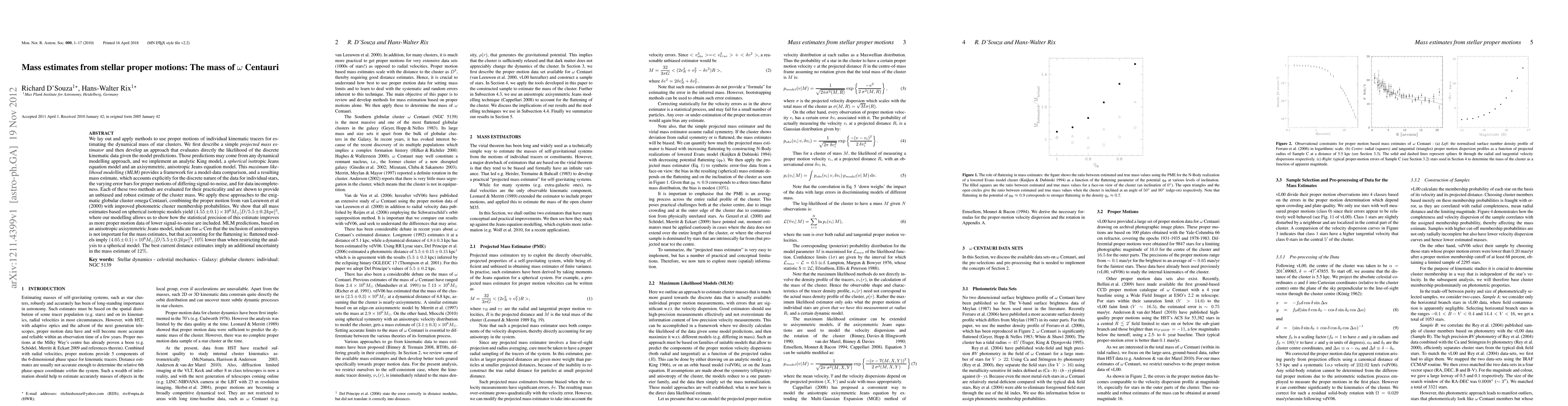 Researchers developed a method to estimate the mass of omega Centauri using stellar proper motions, finding that the cluster's mass is approximately $4.55 imes 10^6 M_{ ext{ð}}$ with a margin of error, and that accounting for the flattening of the cluster has little impact on the estimates.
