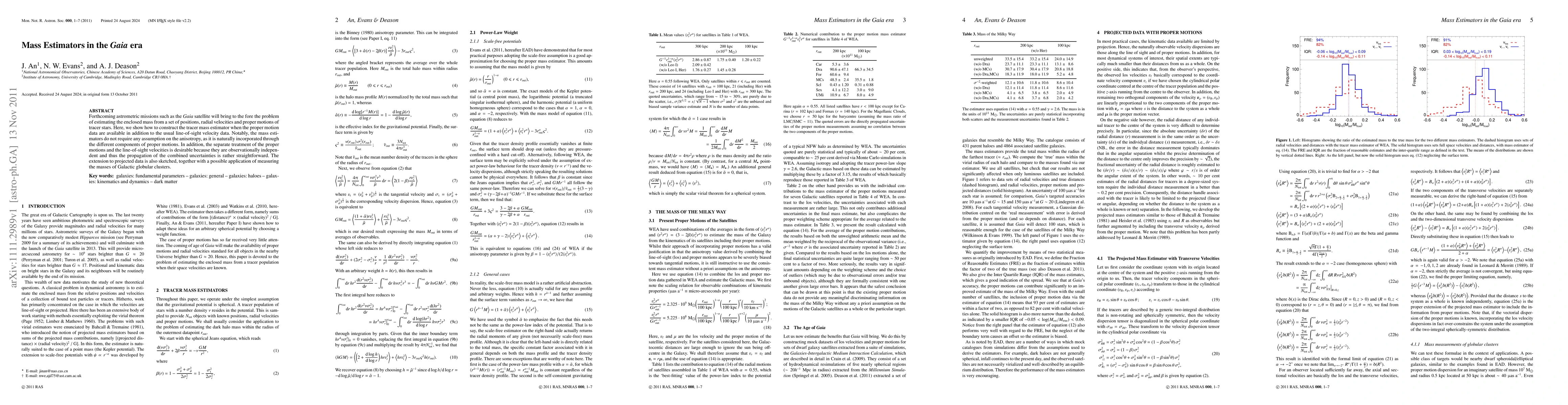 Forthcoming astrometric missions such as the Gaia satellite will bring to the fore the problem of estimating the enclosed mass from a set of positions, radial velocities and proper motions of tracer stars. Here, we show how to construct the tracer mass estimator when the proper motion data are available in addition to the usual line-of-sight velocity data. Notably, the mass estimators do not require any assumption on the anisotropy, as it is naturally incorporated through the different components of proper motions. In addition, the separate treatment of the proper motions and the line-of-sight velocities is desirable because they are observationally independent and thus the propagation of the combined uncertainties is rather straightforward. The extension to projected data is also sketched, together with a possible application of measuring the masses of Galactic globular clusters.
