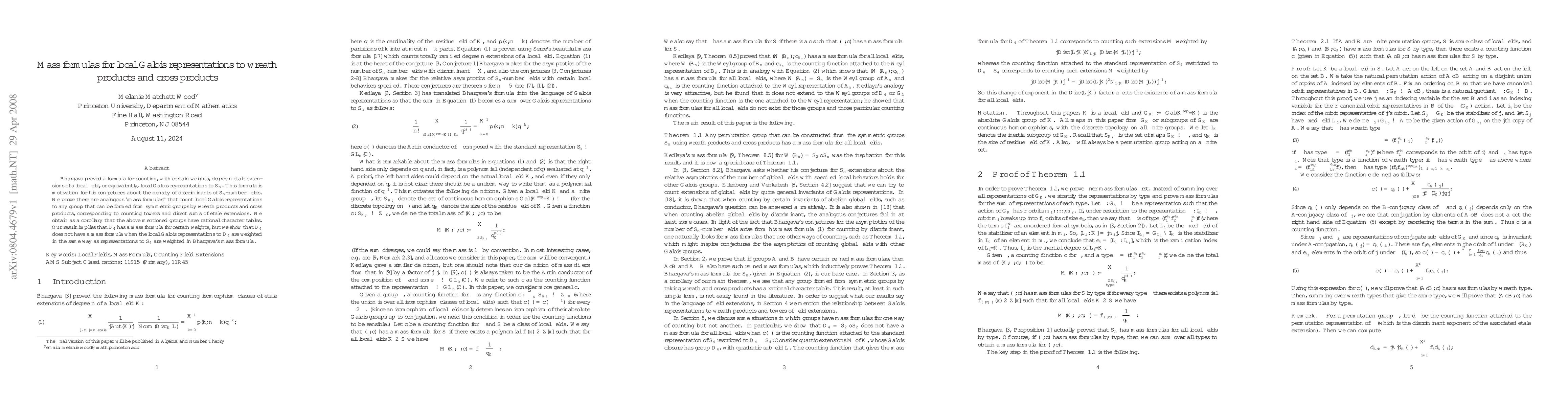 Bhargava proved a formula for counting, with certain weights, degree n etale extensions of a local field, or equivalently, local Galois representations to S_n. This formula is motivation for his conjectures about the density of discriminants of S_n-number fields. We prove there are analogous ``mass formulas'' that count local Galois representations to any group that can be formed from symmetric groups by wreath products and cross products, corresponding to counting towers and direct sums of etale extensions. We obtain as a corollary that the above mentioned groups have rational character tables. Our result implies that D_4 has a mass formula for certain weights, but we show that D_4 does not have a mass formula when the local Galois representations to D_4 are weighted in the same way as representations to S_4 are weighted in Bhargava's mass formula.