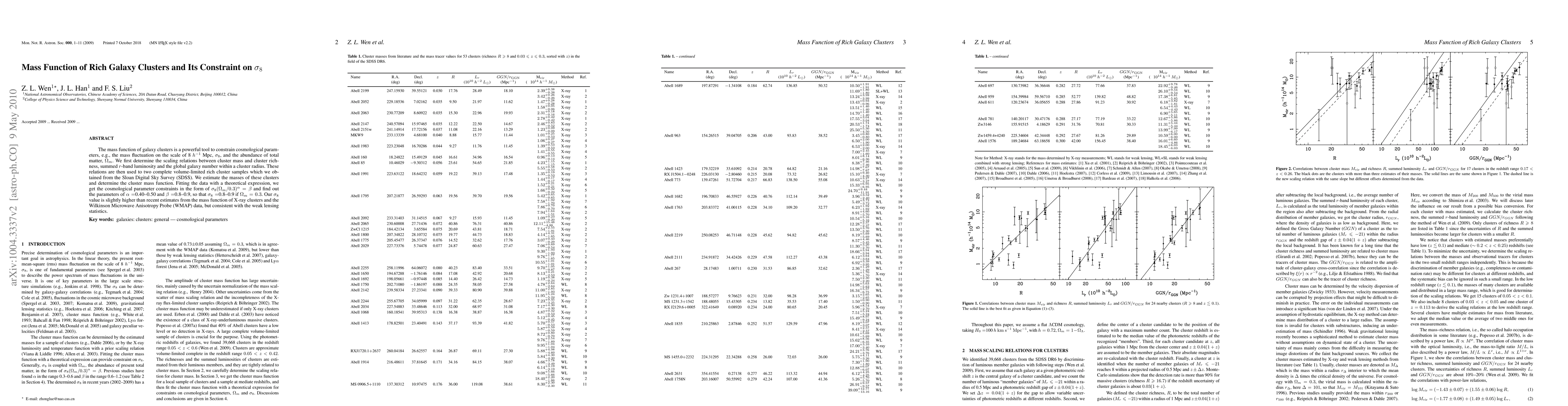 This study determines scaling relations between cluster mass and richness using two complete volume-limited rich galaxy cluster samples from the SDSS. It estimates cluster masses and derives the cluster mass function, constraining cosmological parameters, particularly sigma_8, to be 0.8-0.9 for Omega_m=0.3. These findings are marginally higher than X-ray cluster mass function and WMAP data, yet consistent with weak lensing statistics.