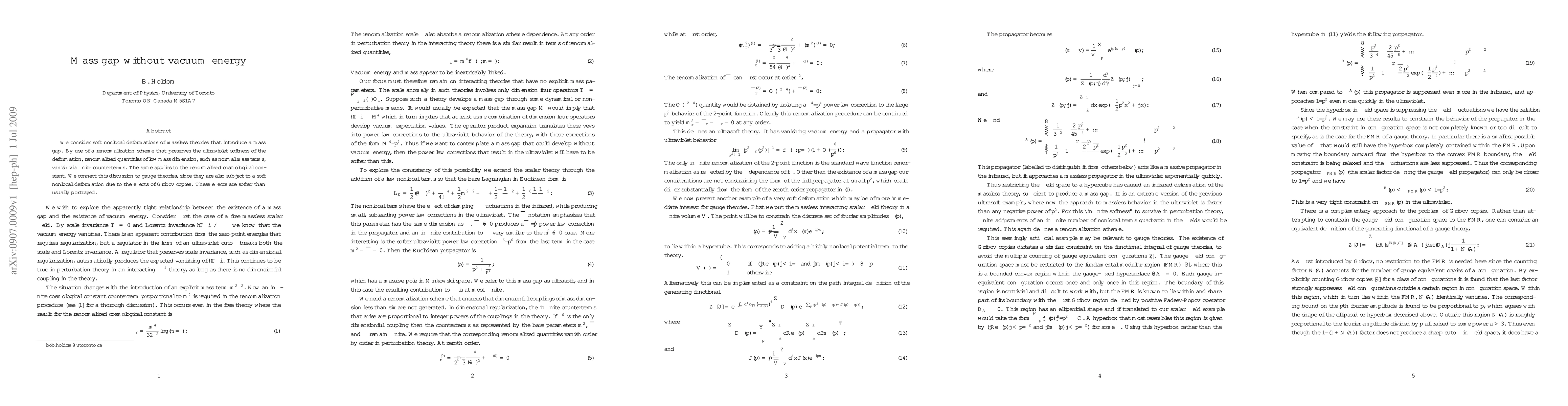 We consider soft nonlocal deformations of massless theories that introduce a mass gap. By use of a renormalization scheme that preserves the ultraviolet softness of the deformation, renormalized quantities of low mass dimension, such as normal mass terms, vanish via finite counterterms. The same applies to the renormalized cosmological constant. We connect this discussion to gauge theories, since they are also subject to a soft nonlocal deformation due to the effects of Gribov copies. These effects are softer than usually portrayed.