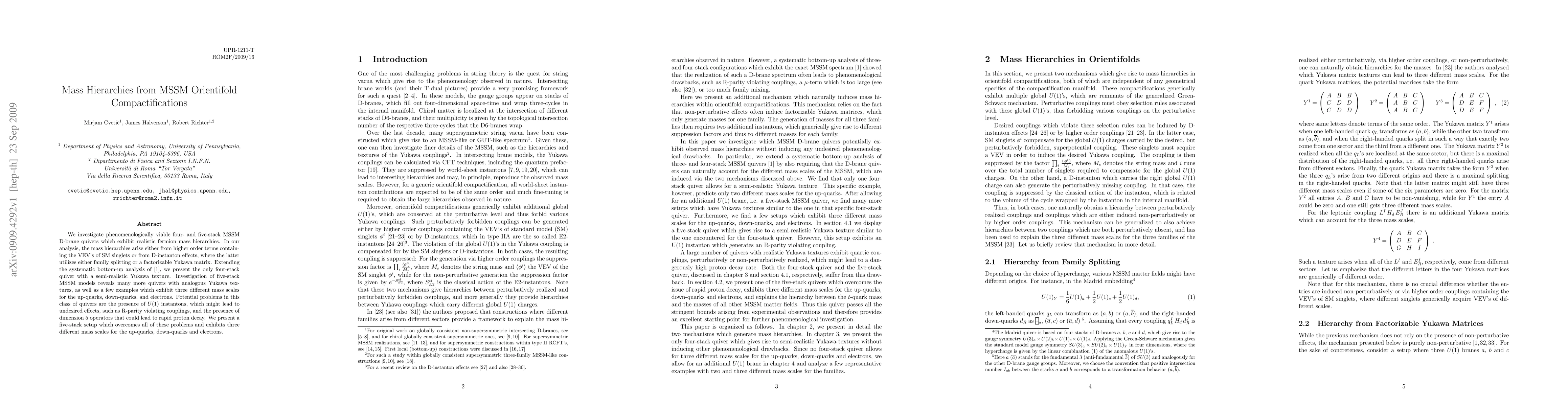 We investigate phenomenologically viable four- and five-stack MSSM D-brane quivers which exhibit realistic fermion mass hierarchies. In our analysis, the mass hierarchies arise either from higher order terms containing the VEV's of SM singlets or from D-instanton effects, where the latter utilizes either family splitting or a factorizable Yukawa matrix. Extending the systematic bottom-up analysis of arXiv:0905.3379, we present the only four-stack quiver with a semi-realistic Yukawa texture. Investigation of five-stack MSSM models reveals many more quivers with analogous Yukawa textures, as well as a few examples which exhibit three different mass scales for the up-quarks, down-quarks, and electrons. Potential problems in this class of quivers are the presence of U(1) instantons, which might lead to undesired effects, such as R-parity violating couplings, and the presence of dimension 5 operators that could lead to rapid proton decay. We present a five-stack setup which overcomes all of these problems and exhibits three different mass scales for the up-quarks, down-quarks and electrons.