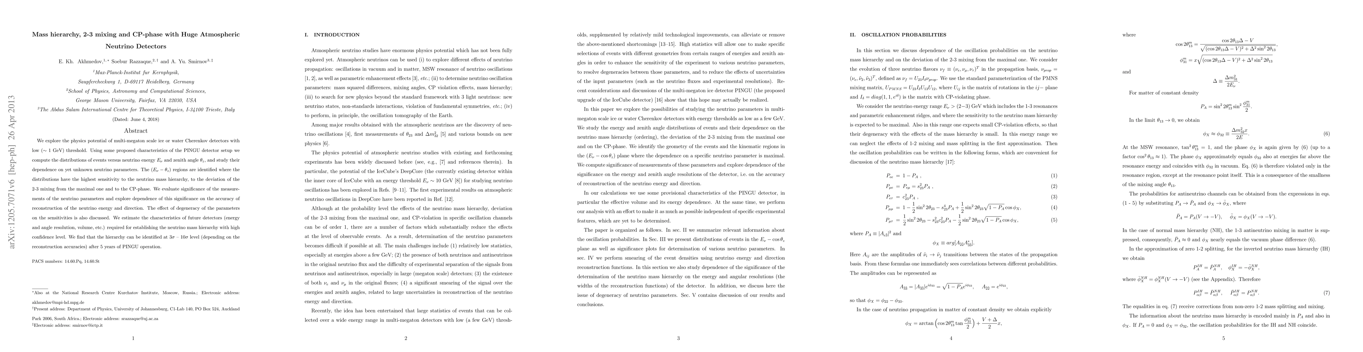 We explore the physics potential of multi-megaton scale ice or water Cherenkov detectors with low ($\sim 1$ GeV) threshold. Using some proposed characteristics of the PINGU detector setup we compute the distributions of events versus neutrino energy $E_\nu$ and zenith angle $\theta_z$, and study their dependence on yet unknown neutrino parameters. The $(E_\nu - \theta_z)$ regions are identified where the distributions have the highest sensitivity to the neutrino mass hierarchy, to the deviation of the 2-3 mixing from the maximal one and to the CP-phase. We evaluate significance of the measurements of the neutrino parameters and explore dependence of this significance on the accuracy of reconstruction of the neutrino energy and direction. The effect of degeneracy of the parameters on the sensitivities is also discussed. We estimate the characteristics of future detectors (energy and angle resolution, volume, etc.) required for establishing the neutrino mass hierarchy with high confidence level. We find that the hierarchy can be identified at $3\sigma$ -- $10\sigma$ level (depending on the reconstruction accuracies) after 5 years of PINGU operation.