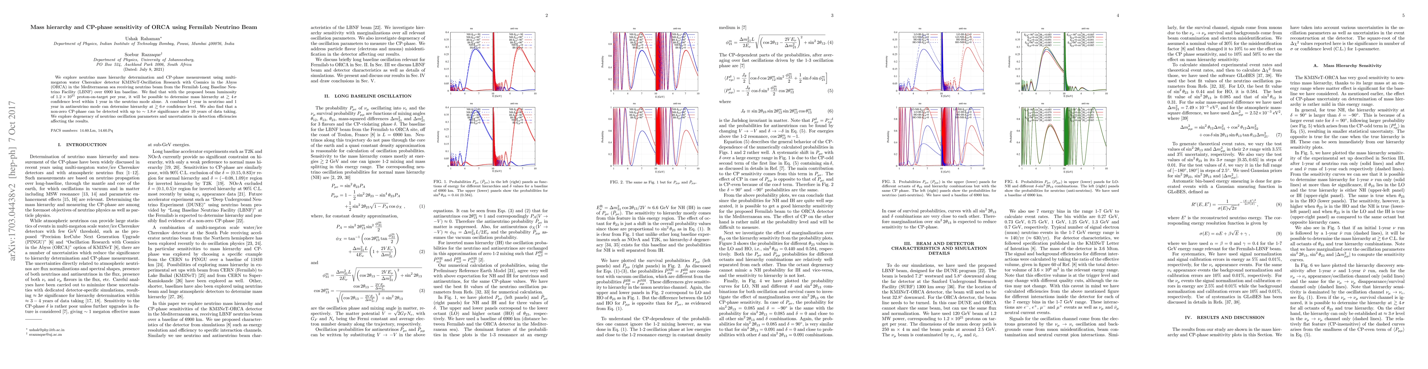 This paper investigates the capability of the ORCA detector to determine neutrino mass hierarchy and measure the CP-phase using a neutrino beam from Fermilab over a 6900 km baseline. It concludes that ORCA can determine the mass hierarchy at a 4σ confidence level within a year in neutrino mode and at 6σ with combined neutrino and antineutrino data.