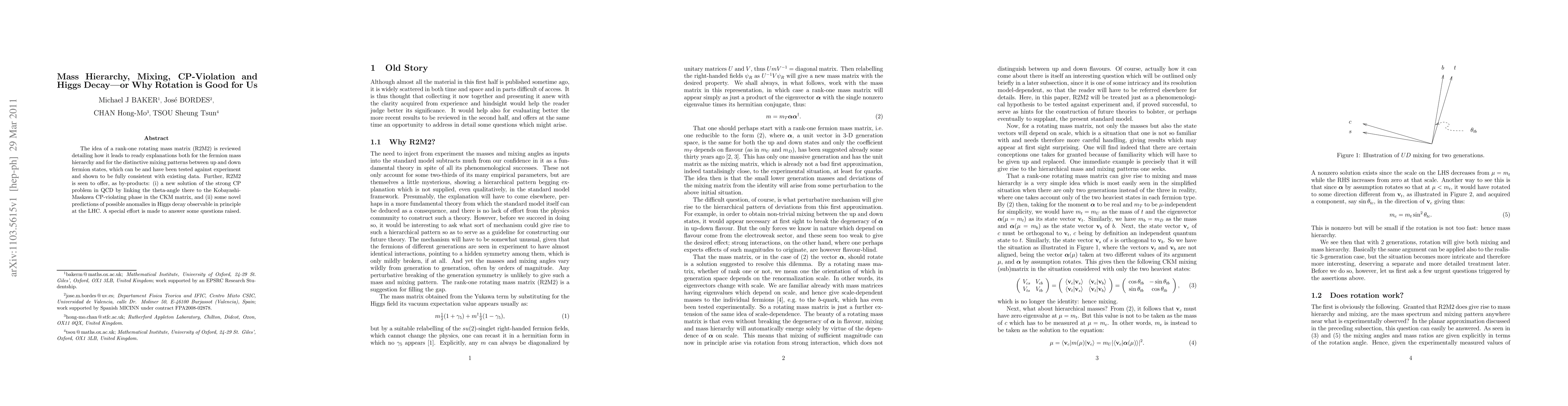 The idea of a rank-one rotating mass matrix (R2M2) is reviewed detailing how it leads to ready explanations both for the fermion mass hierarchy and for the distinctive mixing patterns between up and down fermion states, which can be and have been tested against experiment and shown to be fully consistent with existing data. Further, R2M2 is seen to offer, as by-products: (i) a new solution of the strong CP problem in QCD by linking the theta-angle there to the Kobayashi-Maskawa CP-violating phase in the CKM matrix, and (ii) some novel predictions of possible anomalies in Higgs decay observable in principle at the LHC. A special effort is made to answer some questions raised.