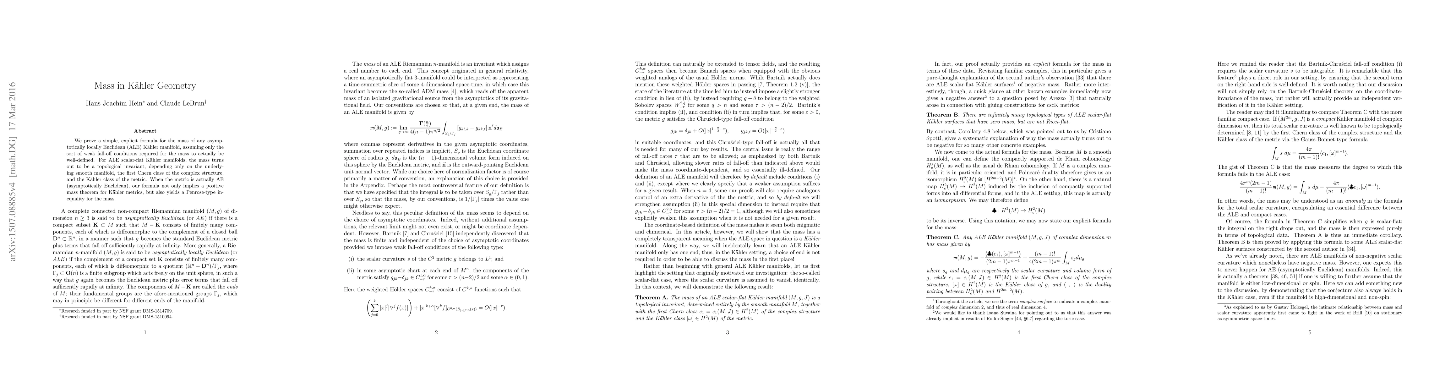 We prove a simple, explicit formula for the mass of any asymptotically locally Euclidean (ALE) K\"ahler manifold, assuming only the sort of weak fall-off conditions required for the mass to actually be well-defined. For ALE scalar-flat K\"ahler manifolds, the mass turns out to be a topological invariant, depending only on the underlying smooth manifold, the first Chern class of the complex structure, and the K\"ahler class of the metric. When the metric is actually AE (asymptotically Euclidean), our formula not only implies a positive mass theorem for K\"ahler metrics, but also yields a Penrose-type inequality for the mass.