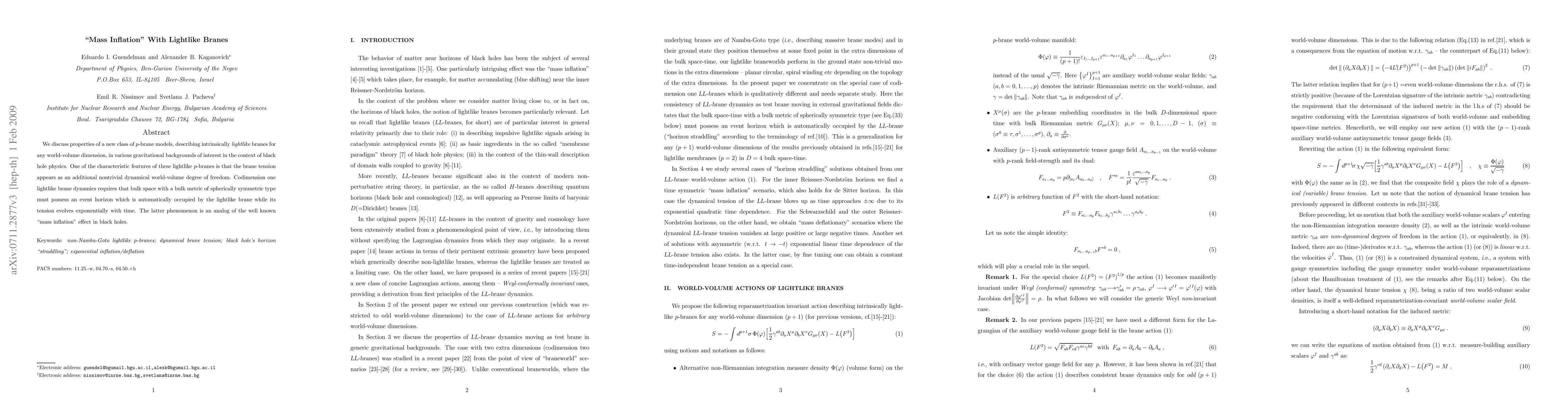 This paper explores a new class of p-brane models featuring intrinsically lightlike branes in various gravitational backgrounds, particularly relevant to black hole physics. These lightlike branes exhibit an evolving brane tension that mimics the "mass inflation" phenomenon observed in black holes.