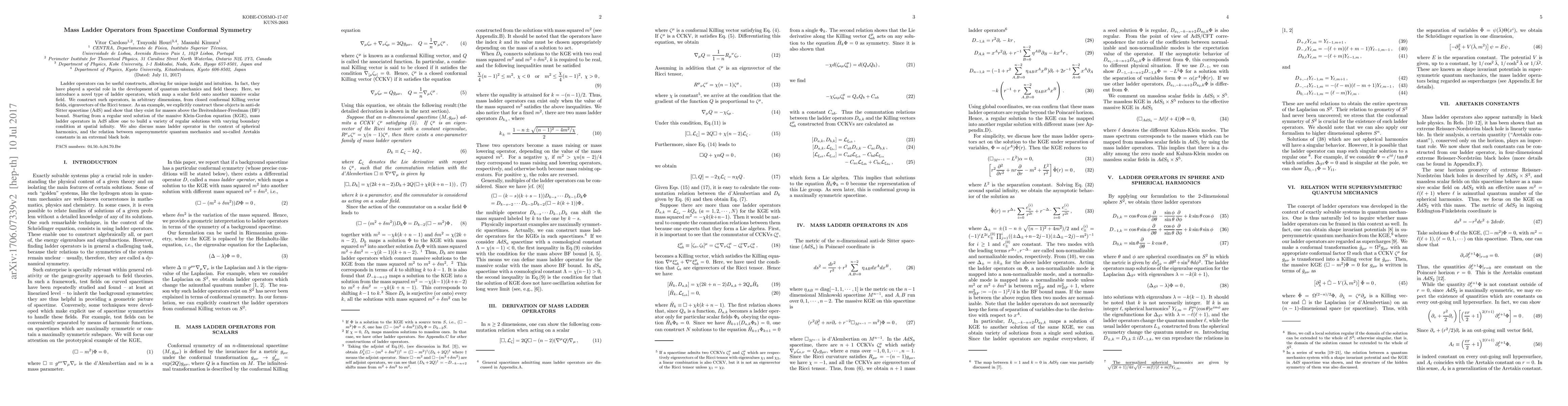 Ladder operators can be useful constructs, allowing for unique insight and intuition. In fact, they have played a special role in the development of quantum mechanics and field theory. Here, we introduce a novel type of ladder operators, which map a scalar field onto another massive scalar field. We construct such operators, in arbitrary dimensions, from closed conformal Killing vector fields, eigenvectors of the Ricci tensor. As an example, we explicitly construct these objects in anti-de Sitter spacetime (AdS) and show that they exist for masses above the Breitenlohner-Freedman (BF) bound. Starting from a regular seed solution of the massive Klein-Gordon equation (KGE), mass ladder operators in AdS allow one to build a variety of regular solutions with varying boundary condition at spatial infinity. We also discuss mass ladder operator in the context of spherical harmonics, and the relation between supersymmetric quantum mechanics and so-called Aretakis constants in an extremal black hole.