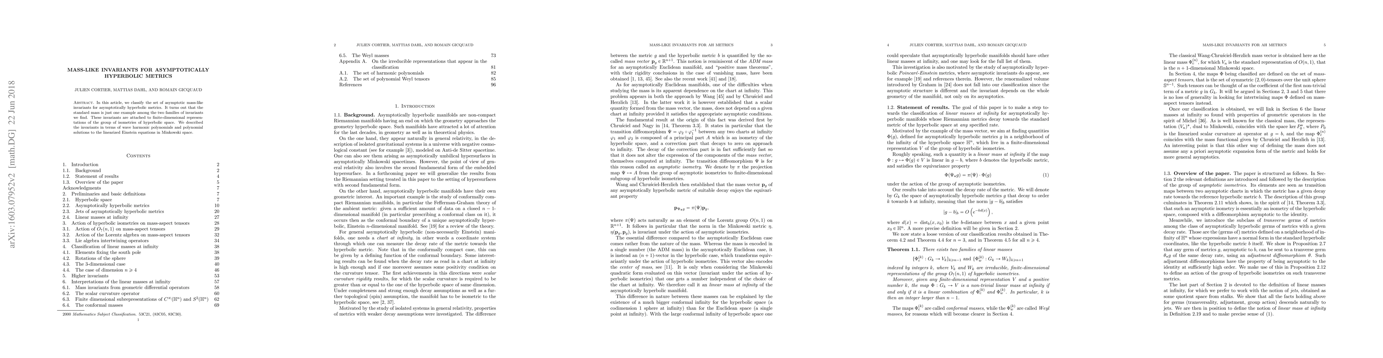 Researchers classify mass-like invariants for asymptotically hyperbolic metrics, finding that the standard mass is just one example of a two-family of invariants attached to finite-dimensional representations of the group of isometries.