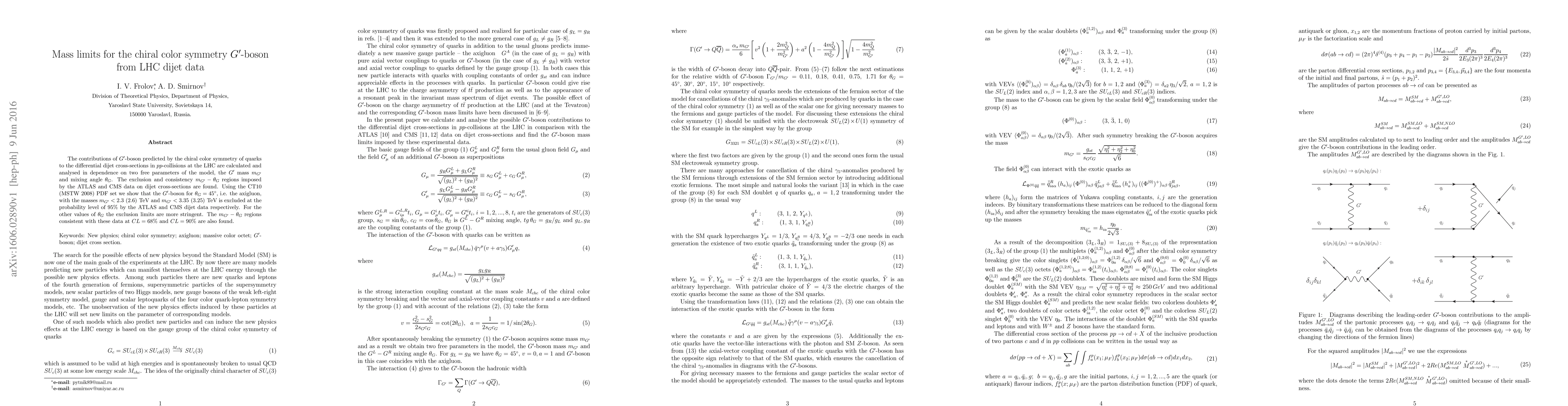 This paper calculates the contributions of $G'$-bosons to LHC dijet cross-sections and determines mass limits for these bosons based on ATLAS and CMS data. The $G'$-boson with a mixing angle of $45^{\circ}$ and masses below $2.3$ TeV (ATLAS) and $2.6$ TeV (CMS) is excluded at $95\%$ confidence level.