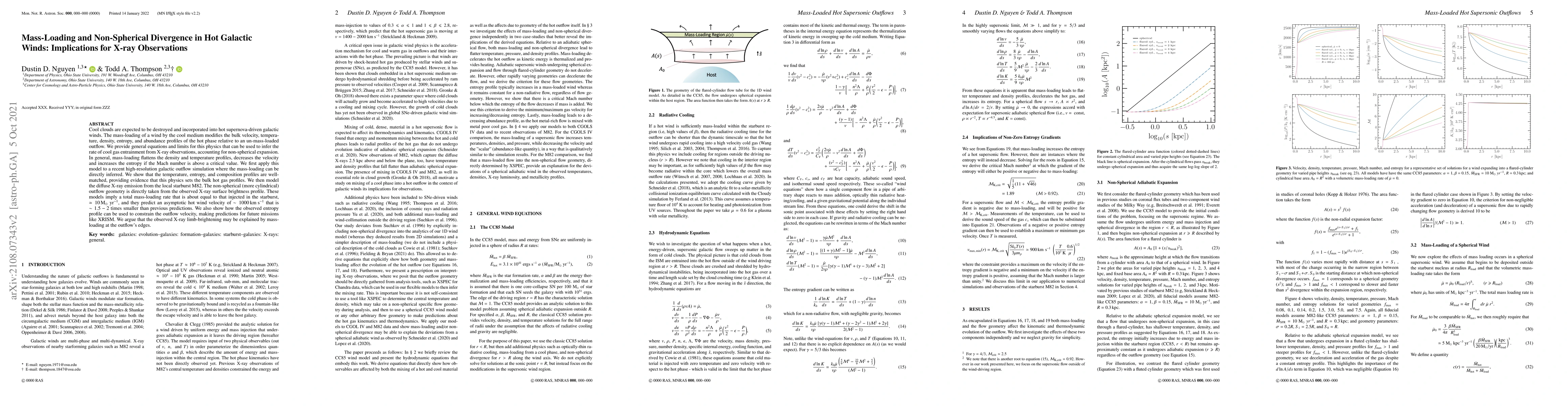 Cool clouds are expected to be destroyed and incorporated into hot supernova-driven galactic winds. The mass-loading of a wind by the cool medium modifies the bulk velocity, temperature, density, entropy, and abundance profiles of the hot phase relative to an un-mass-loaded outflow. We provide general equations and limits for this physics that can be used to infer the rate of cool gas entrainment from X-ray observations, accounting for non-spherical expansion. In general, mass-loading flattens the density and temperature profiles, decreases the velocity and increases the entropy if the Mach number is above a critical value. We first apply this model to a recent high-resolution galactic outflow simulation where the mass-loading can be directly inferred. We show that the temperature, entropy, and composition profiles are well-matched, providing evidence that this physics sets the bulk hot gas profiles. We then model the diffuse X-ray emission from the local starburst M82. The non-spherical (more cylindrical) outflow geometry is directly taken from the observed X-ray surface brightness profile. These models imply a total mass-loading rate that is about equal to that injected in the starburst, $\simeq 10$ M$_\odot$ yr$^{-1}$, and they predict an asymptotic hot wind velocity of $\sim 1000\,{\rm km \ s^{-1}}$ that is $\sim1.5-2$ times smaller than previous predictions. We also show how the observed entropy profile can be used to constrain the outflow velocity, making predictions for future missions like XRISM. We argue that the observed X-ray limb-brightening may be explained by mass-loading at the outflow's edges.