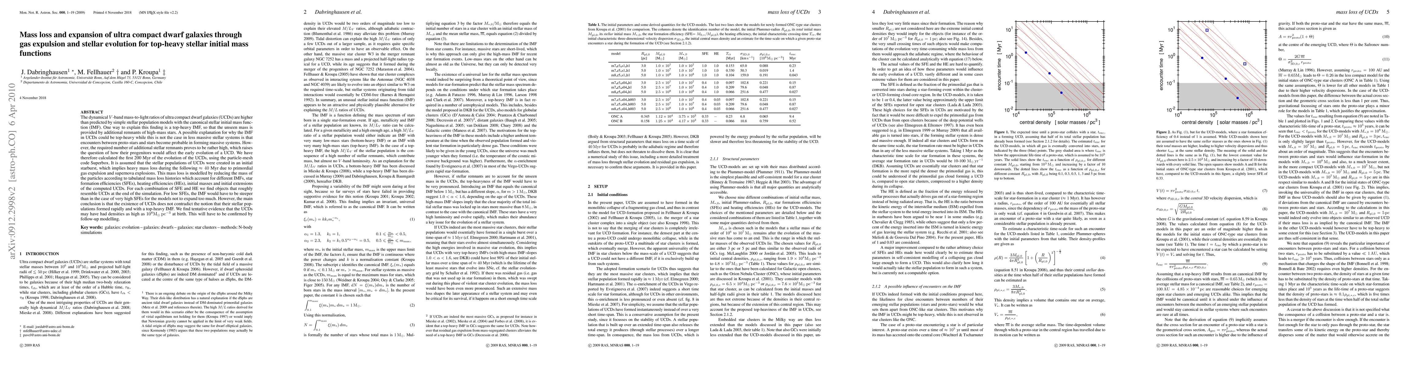 This research explores the mass-loss and expansion of ultra compact dwarf galaxies (UCDs) through gas expulsion and stellar evolution, particularly focusing on top-heavy stellar initial mass functions (IMFs). The study finds that UCDs can evolve to resemble observed objects through rapid formation and significant mass loss in their early stages, supporting the idea that their stellar populations formed in a top-heavy IMF scenario.