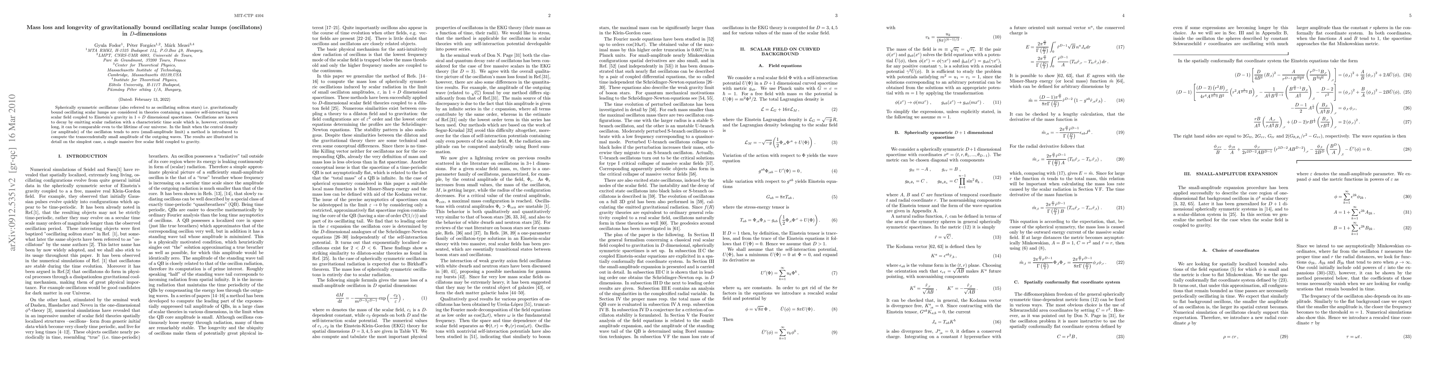 This paper explores the mass loss and longevity of oscillatons, gravitationally bound oscillating scalar lumps, in D-dimensional spacetimes. It introduces a method to compute the small amplitude of outgoing waves in the small-amplitude limit and demonstrates the results using a single massive free scalar field coupled to gravity.