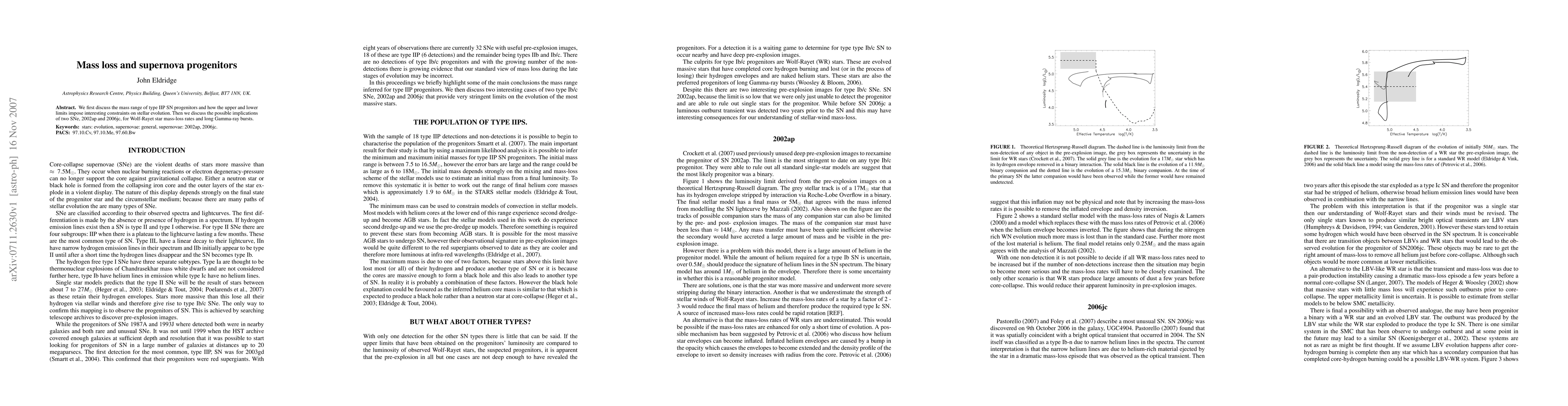 Researchers investigated the mass range of type IIP SN progenitors and their implications for stellar evolution and Wolf-Rayet star mass-loss rates.