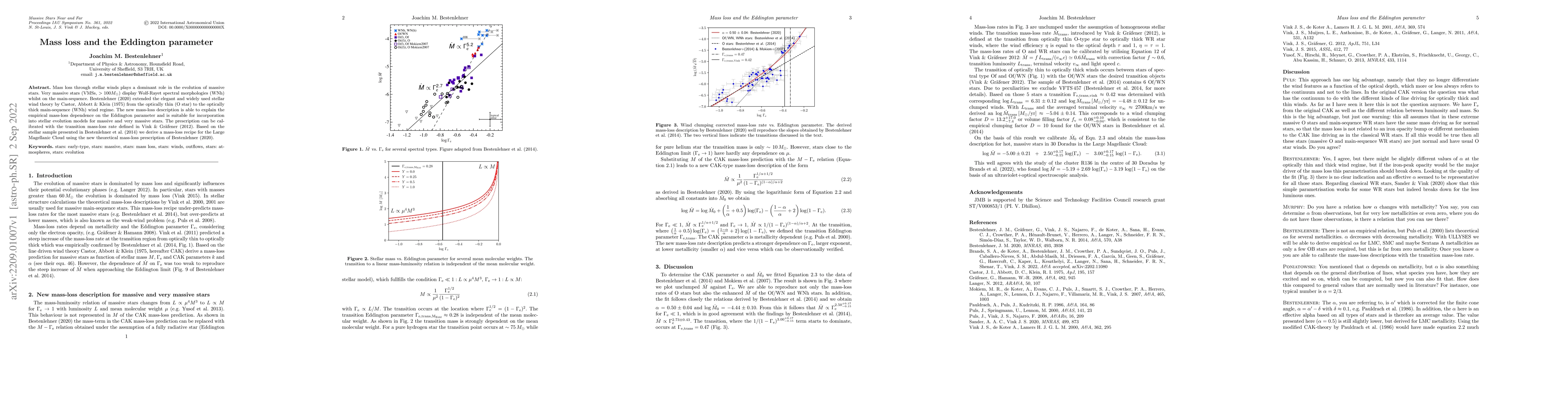Mass loss through stellar winds plays a dominant role in the evolution of massive stars. Very massive stars (VMSs, $> 100 M_{\odot}$) display Wolf-Rayet spectral morphologies (WNh) whilst on the main-sequence. Bestenlehner (2020) extended the elegant and widely used stellar wind theory by Castor, Abbott & Klein (1975) from the optically thin (O star) to the optically thick main-sequence (WNh) wind regime. The new mass-loss description is able to explain the empirical mass-loss dependence on the Eddington parameter and is suitable for incorporation into stellar evolution models for massive and very massive stars. The prescription can be calibrated with the transition mass-loss rate defined in Vink & Gr\"afener (2012). Based on the stellar sample presented in Bestenlehner et al. (2014) we derive a mass-loss recipe for the Large Magellanic Cloud using the new theoretical mass-loss prescription of Bestenlehner (2020).