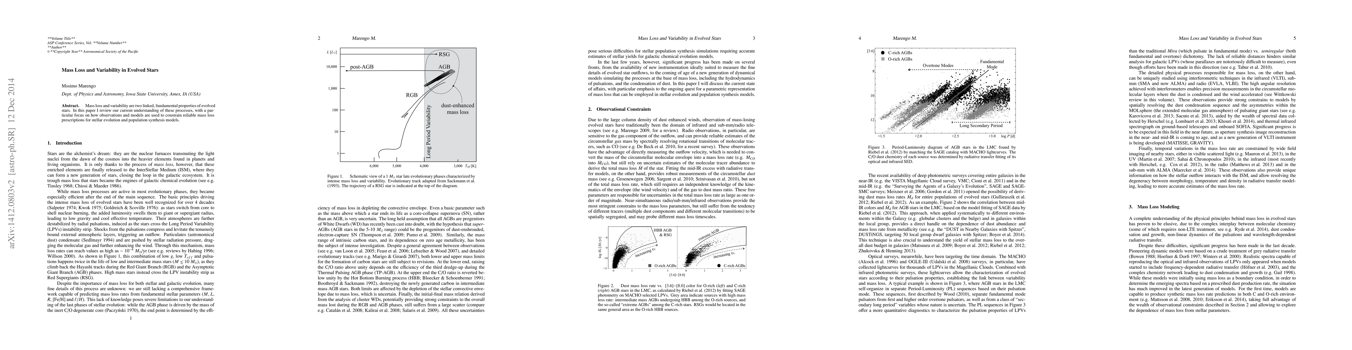 This paper reviews current understanding of mass loss and variability in evolved stars, emphasizing the use of observations and models to develop reliable mass loss prescriptions for stellar evolution and population synthesis models.