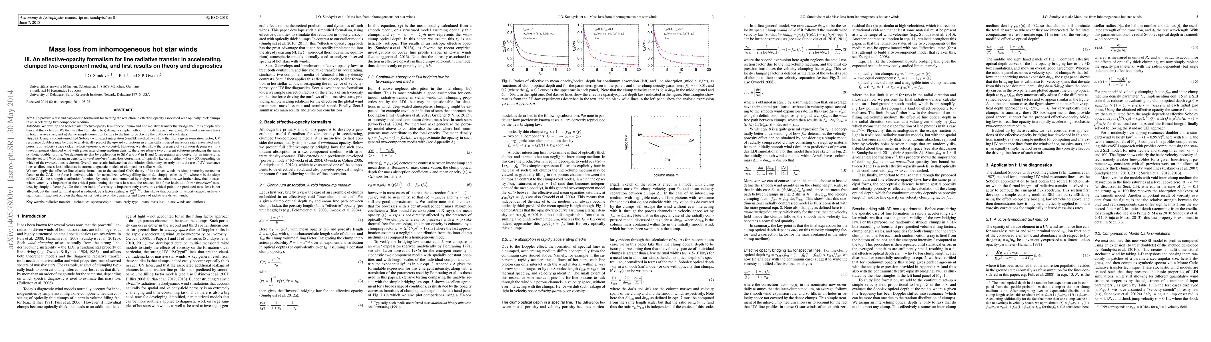 This paper introduces an effective-opacity formalism for radiative transfer in clumped, accelerating stellar winds, and applies it to derive correction factors for mass-loss rates in hot stars. The study finds that UV resonance lines can predict upward mass-loss corrections due to velocity-porosity, but solution degeneracies limit their direct use as mass-loss indicators.