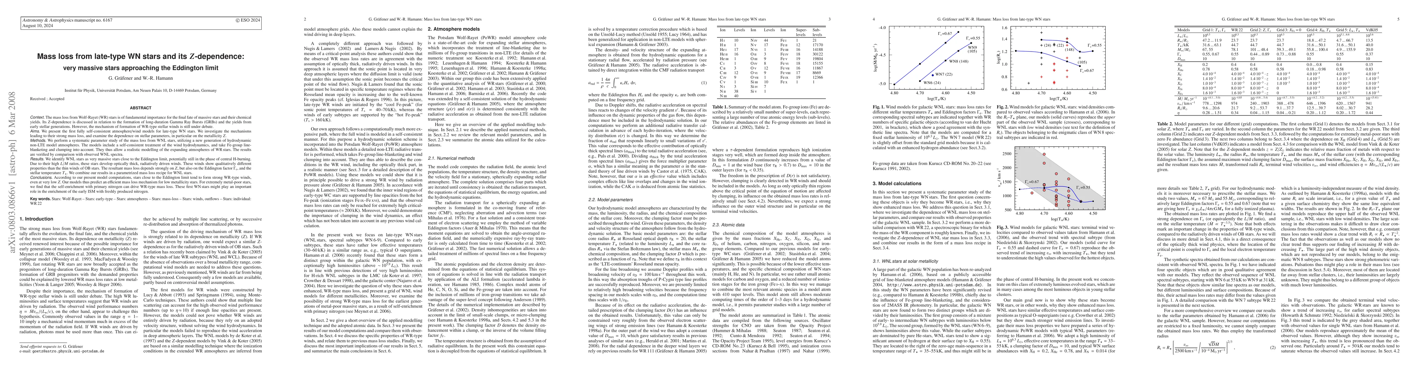 The mass loss from Wolf-Rayet (WR) stars is of fundamental importance for the final fate of massive stars and their chemical yields. Its Z-dependence is discussed in relation to the formation of long-duration Gamma Ray Bursts (GRBs) and the yields from early stellar generations. However, the mechanism of formation of WR-type stellar winds is still under debate. We present the first fully self-consistent atmosphere/wind models for late-type WN stars. We investigate the mechanisms leading to their strong mass loss, and examine the dependence on stellar parameters, in particular on the metallicity Z. We identify WNL stars as very massive stars close to the Eddington limit, potentially still in the phase of central H-burning. Due to their high L/M ratios, these stars develop optically thick, radiatively driven winds. These winds show qualitatively different properties than the thin winds of OB stars. The resultant mass loss depends strongly on Z, but also on the Eddington factor, and the stellar temperature. We combine our results in a parametrized mass loss recipe for WNL stars. According to our present model computations, stars close to the Eddington limit tend to form strong WR-type winds, even at very low Z. Our models thus predict an efficient mass loss mechanism for low metallicity stars. For extremely metal-poor stars, we find that the self-enrichment with primary nitrogen can drive WR-type mass loss. These first WN stars might play an important role in the enrichment of the early ISM with freshly produced nitrogen.
