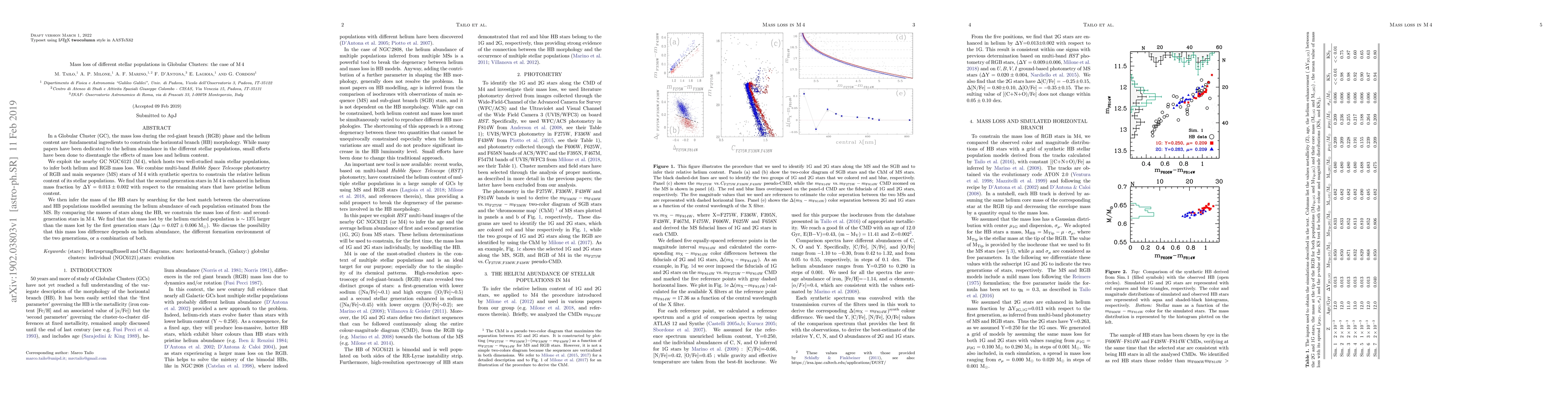 This study investigates mass loss and helium content in the stellar populations of the globular cluster M4, finding that second-generation stars have a higher helium mass fraction and lose about 13% more mass compared to first-generation stars, suggesting a potential link between mass loss and helium abundance.