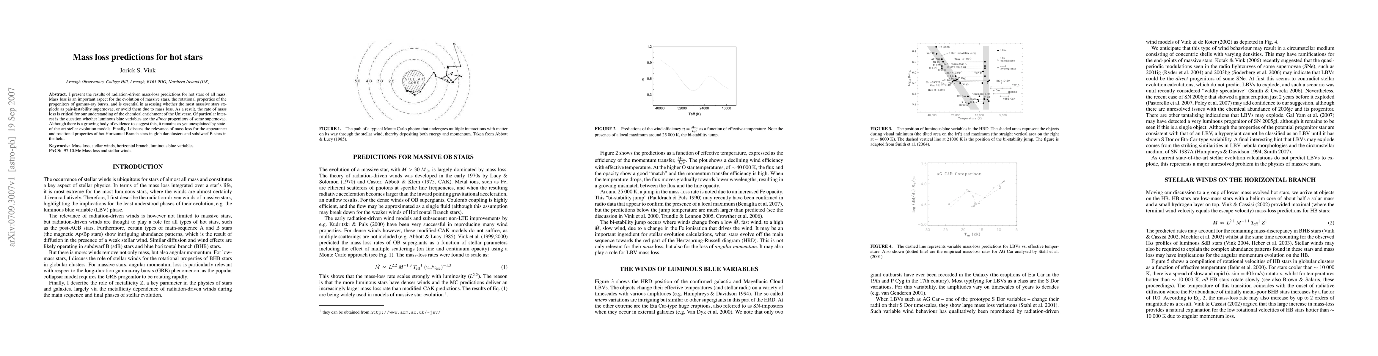 The paper introduces updated mass-loss predictions for hot stars, including the bi-stability jump, and discusses their implications for Luminous Blue Variables and supernova progenitors.